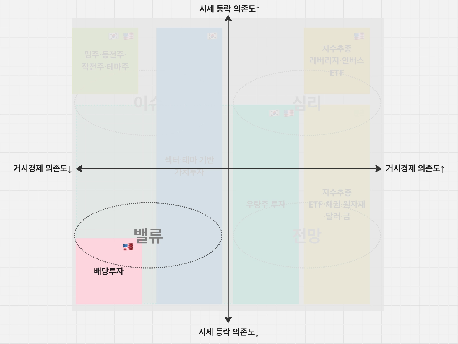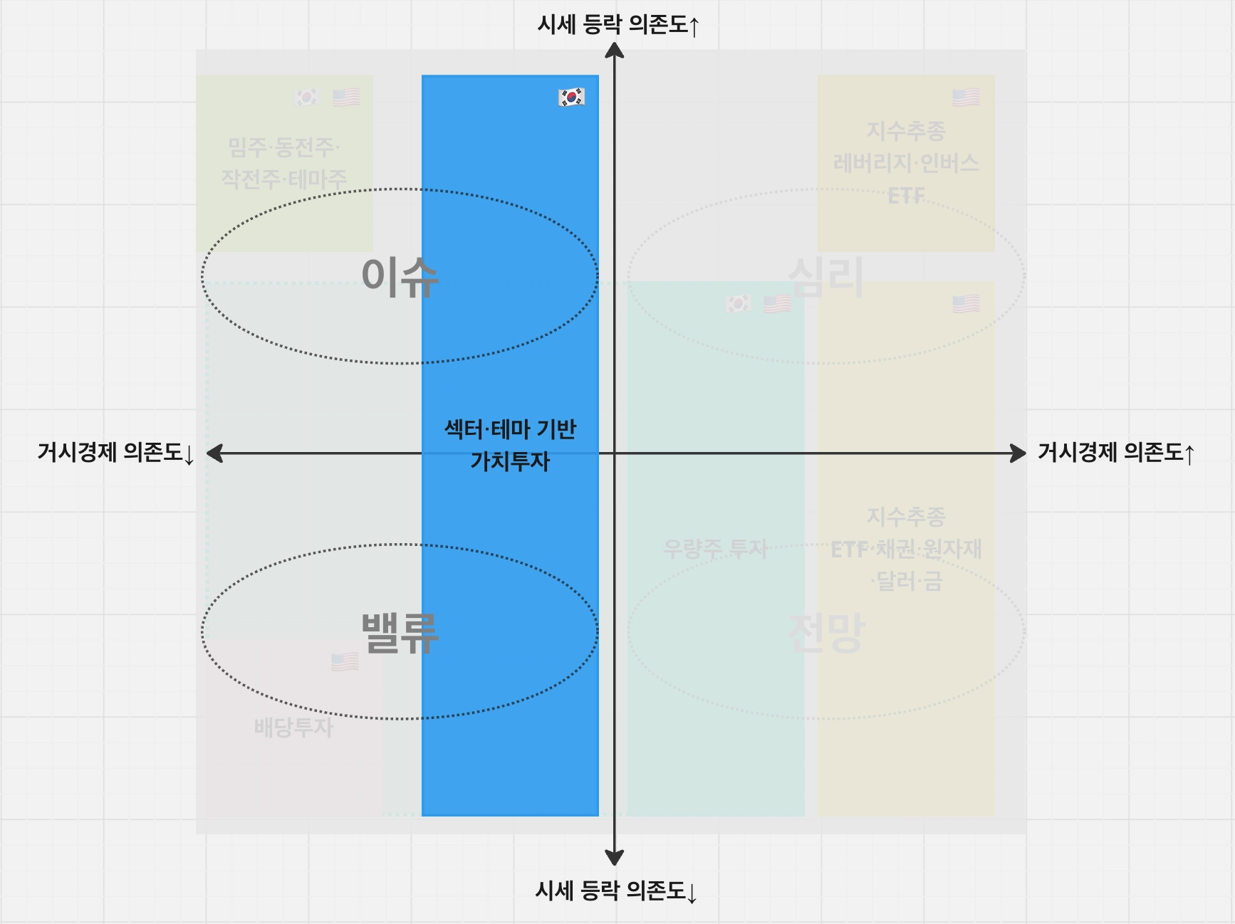 밸류 기반 섹터 투자 | "이 산업, 아직 저평가 됐네? 싸게 담자" | 가치를 믿고 싸게 사서 오래 들고가기 |