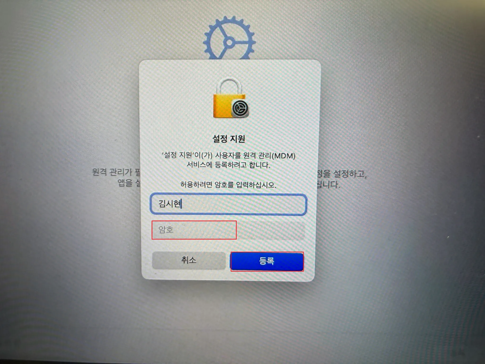 비밀번호 입력 후 등록 클릭