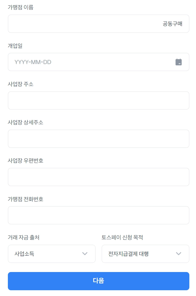이미 토스페이와 계약했거나 심사중인 사업자등록번호예요라고 확인되나요?