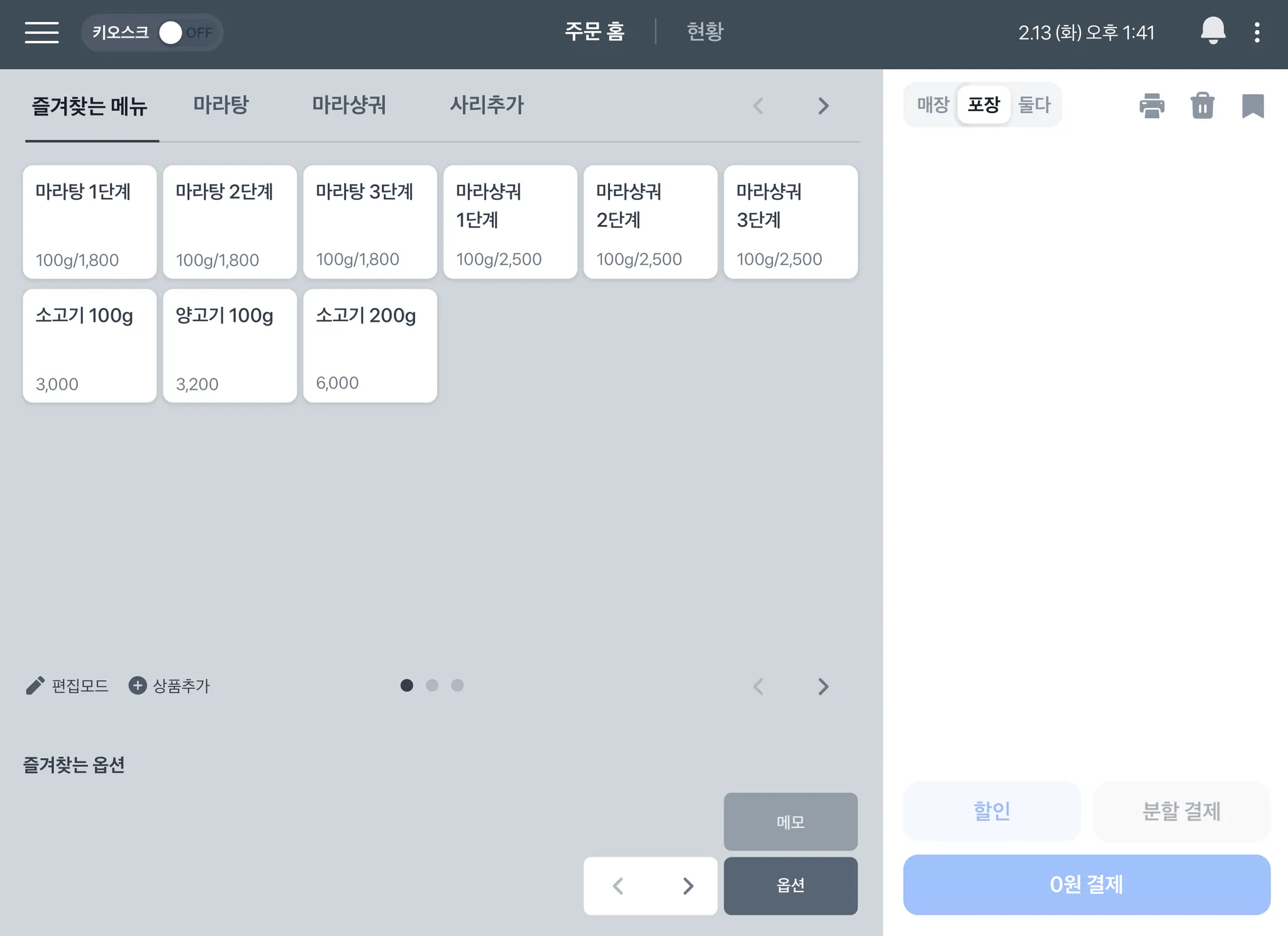 저울과 연결이 되었다면 포스 화면에 저울 무게가 떠요.