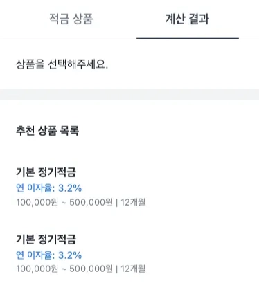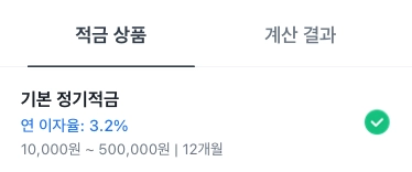 선택한 적금 상품의 정보는 이후 구현 중 “계산 결과” 탭에서 사용할 예정이에요.