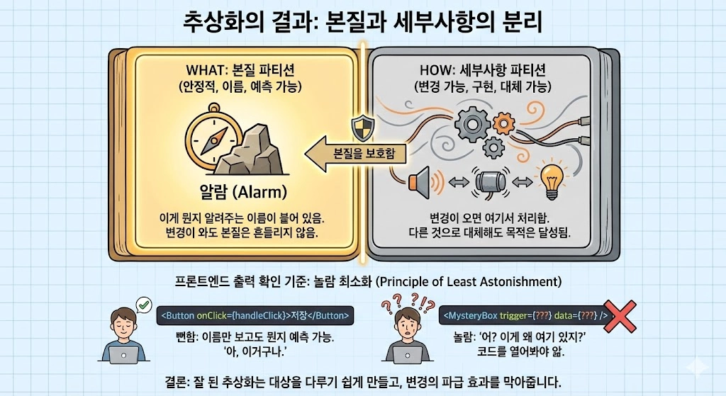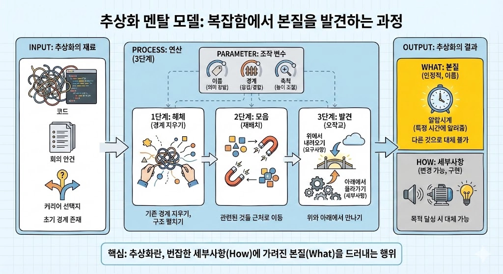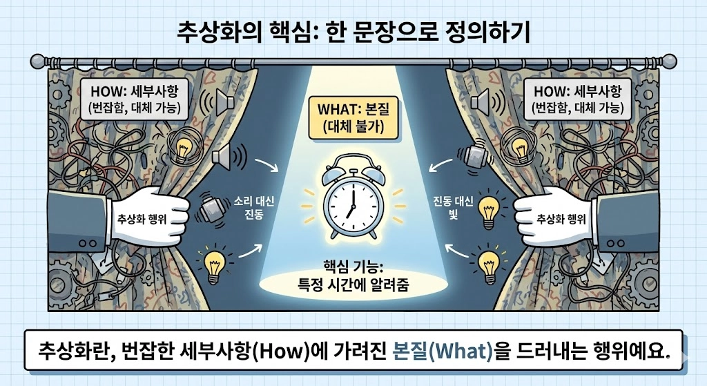 추상화란, 번잡한 세부사항(How)에 가려진 본질(What)을 드러내는 행위예요.
