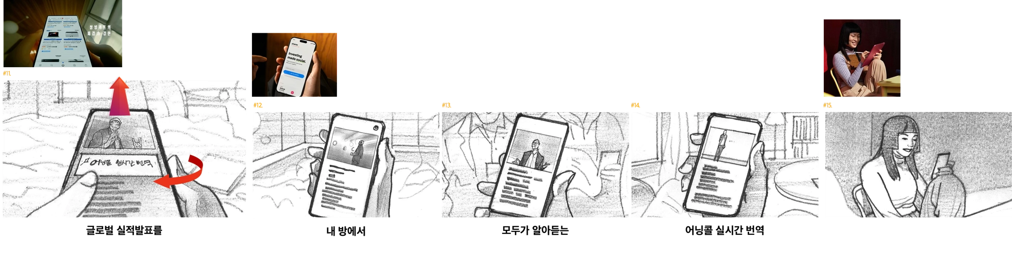 실시간으로 풀 화면으로 보다가 실시간 번역이 바텀 싯으로 깔리면서 차트, 커뮤니티 등을 보는 구성으로 → 자세한 구성 내용은 추후 전달