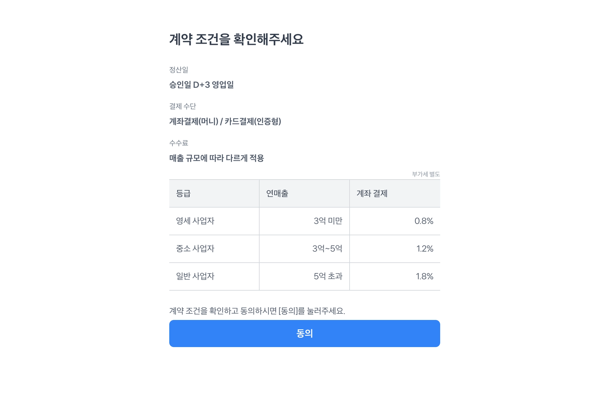 영세·중소 사업자 등급에 해당하시는 경우계좌결제(머니) 수수료에 대한 할인 혜택이 적용 돼요.