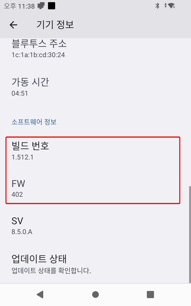 13. “빌드 번호”, “FW”로 버전확인