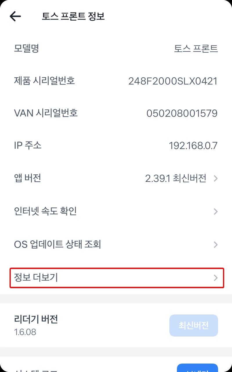 (터미널 버전확인) 우상단 설정 > 토스 터미널 정보 > OS 버전에서 확인 가능