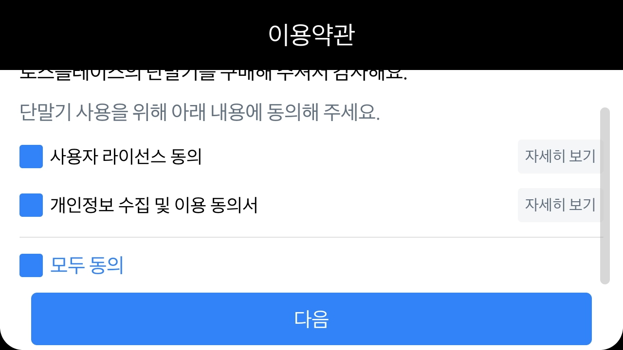 앱 업데이트가 완료되면 기존 단말기와 동일하게 매장 정보 입력을 진행해요.