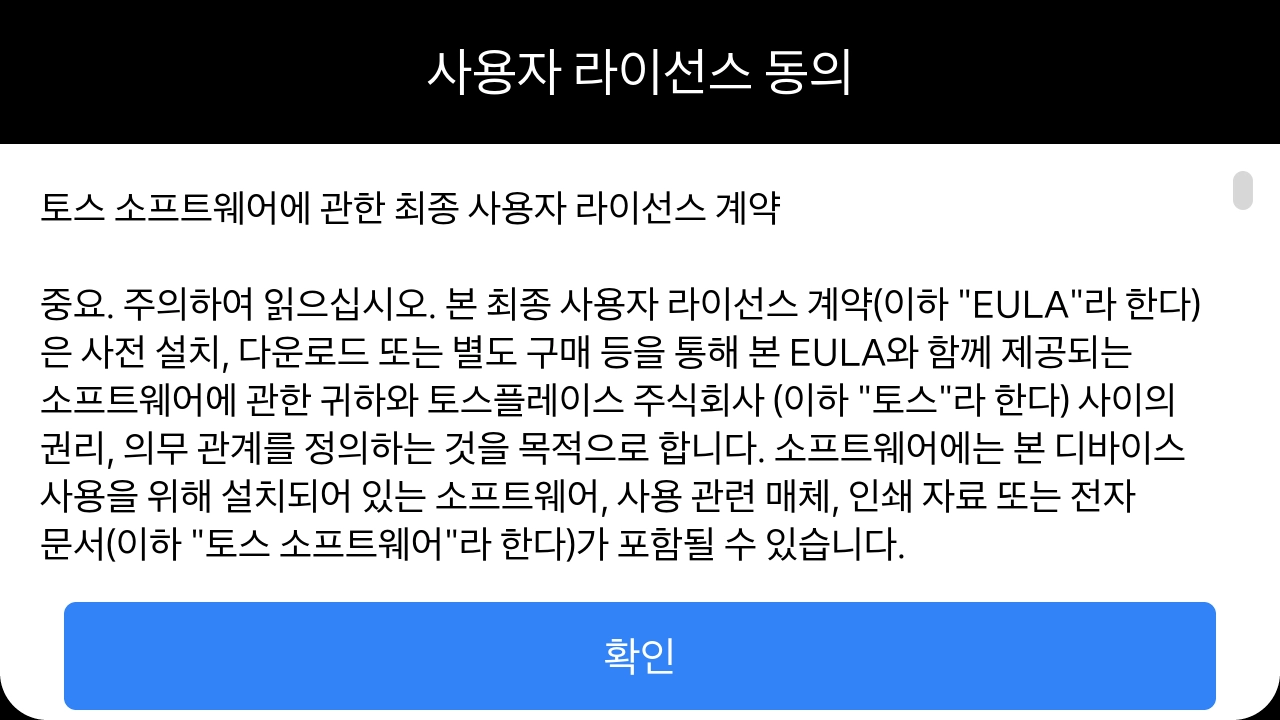 (터미널 버전확인) 우상단 설정 > 토스 터미널 정보 > OS 버전에서 확인 가능