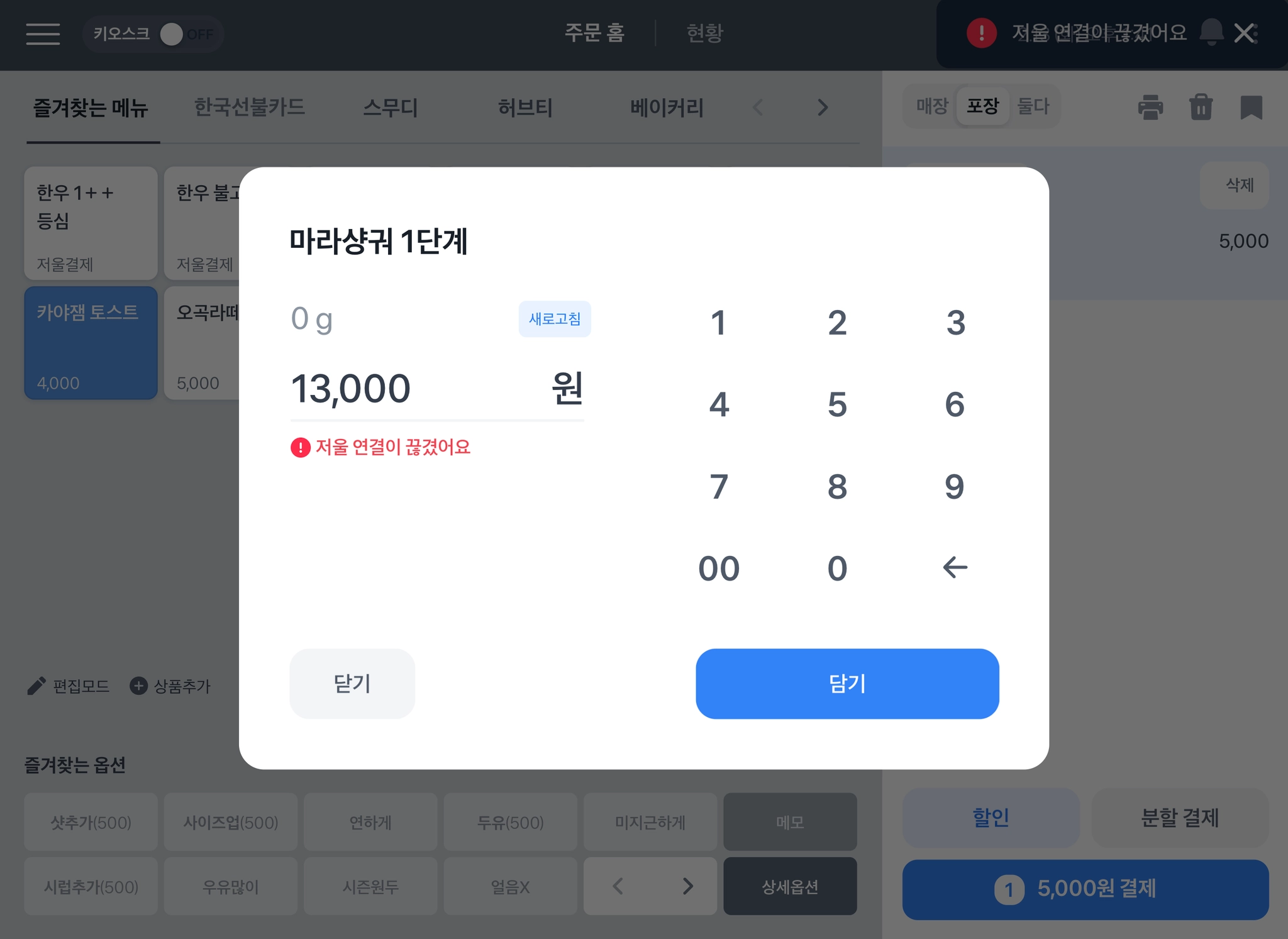 4. 저울 연결이 끊기더라도 정상적으로 결제할 수 있어요