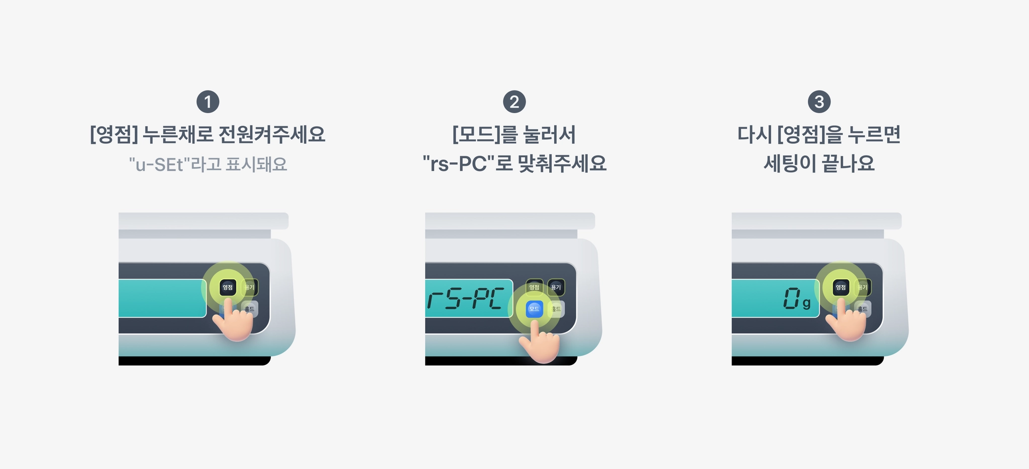 저울 시리얼 유선을 포스가 설치된 기기에 연결해주세요.
