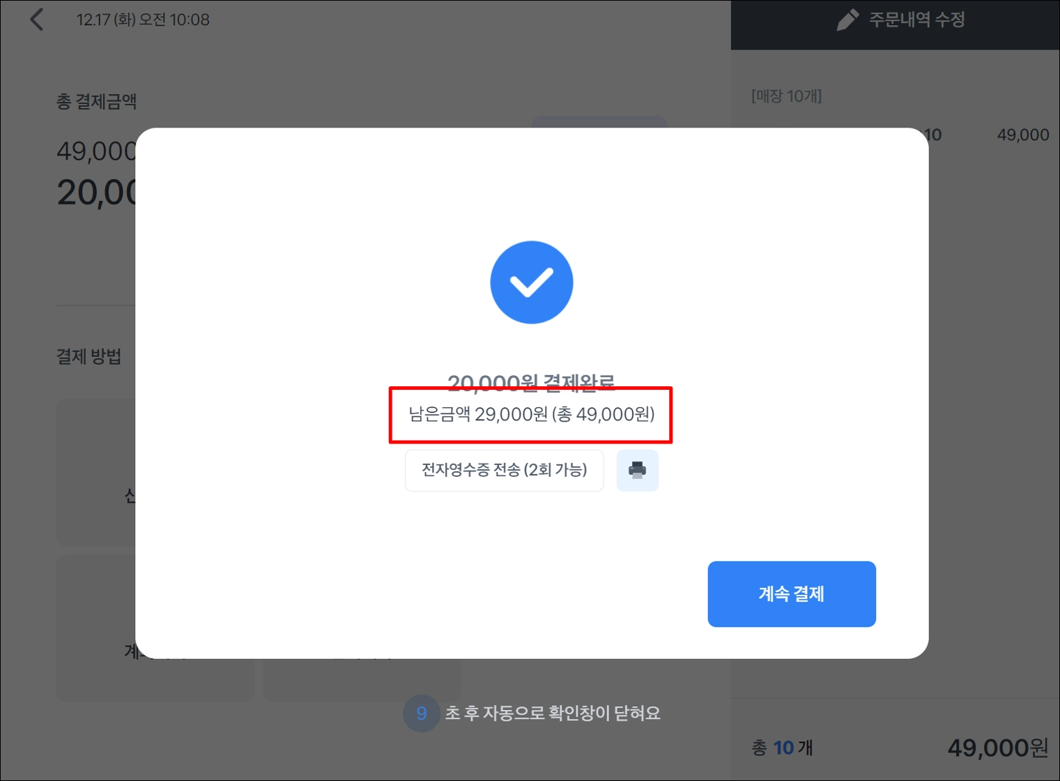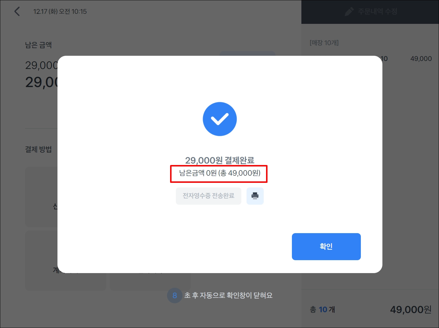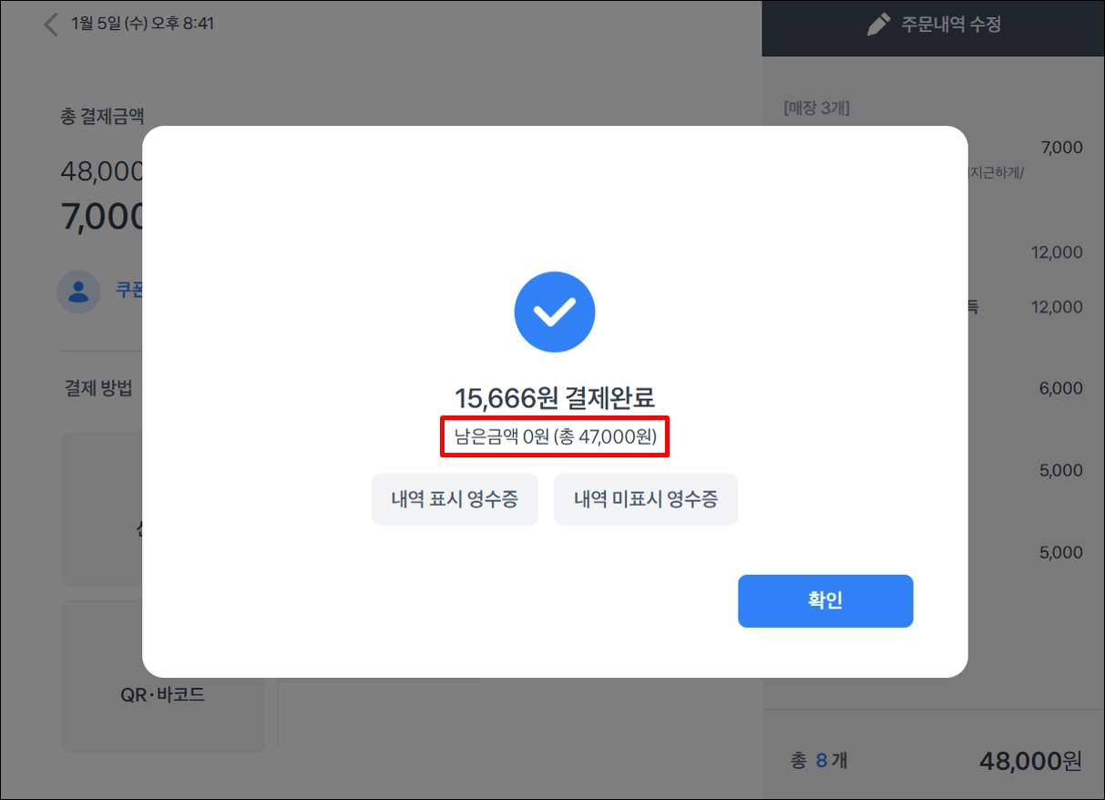 포스 왼쪽 상단 ≡ → 결제 내역을 눌러주세요.