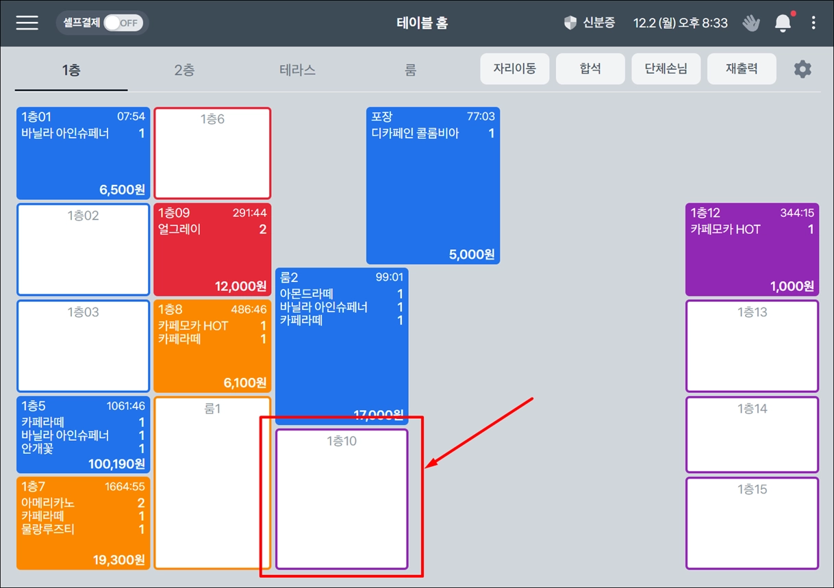 포스의 테이블 홈 → 셋팅된 테이블 하나를 클릭해 주세요.