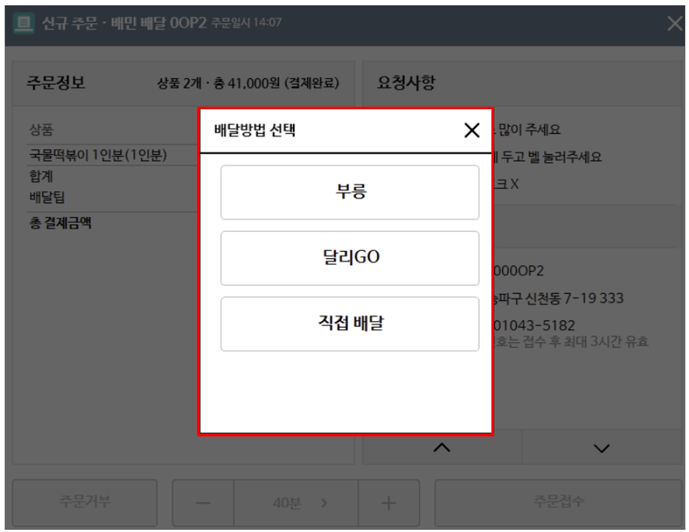 배달 주문 접수방법