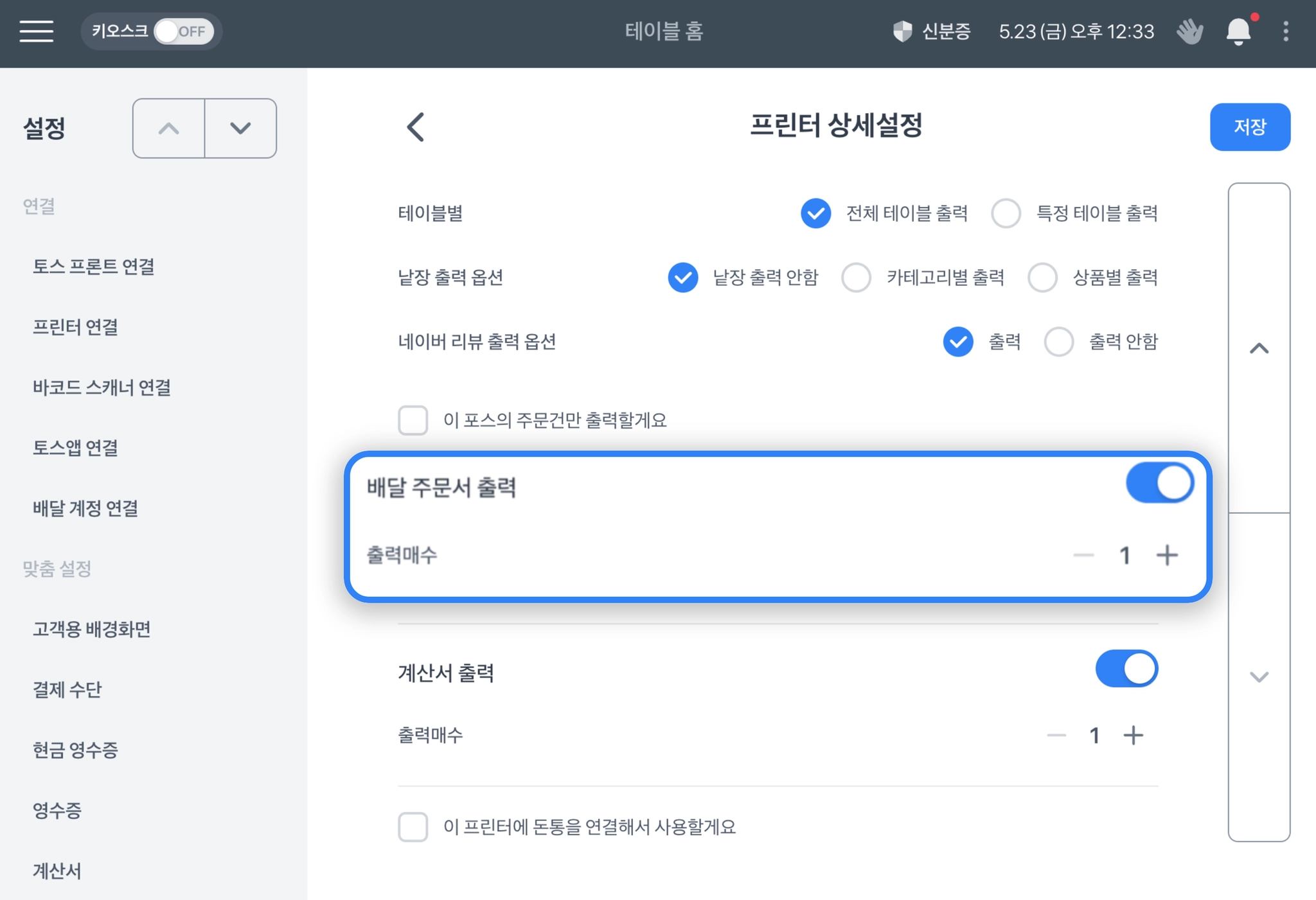 배달 주문서 출력 설정하기