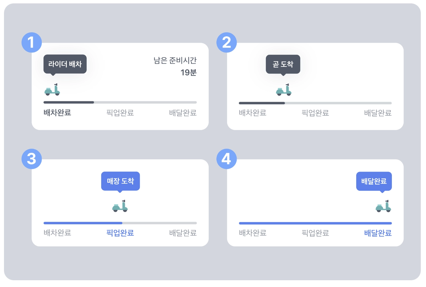 주문 현황에서 완료하러 가기 선택 후, 노출되는 배민Lite 화면의 준비완료 선택 시, 주문 현황 > 완료 탭으로 이동돼요.