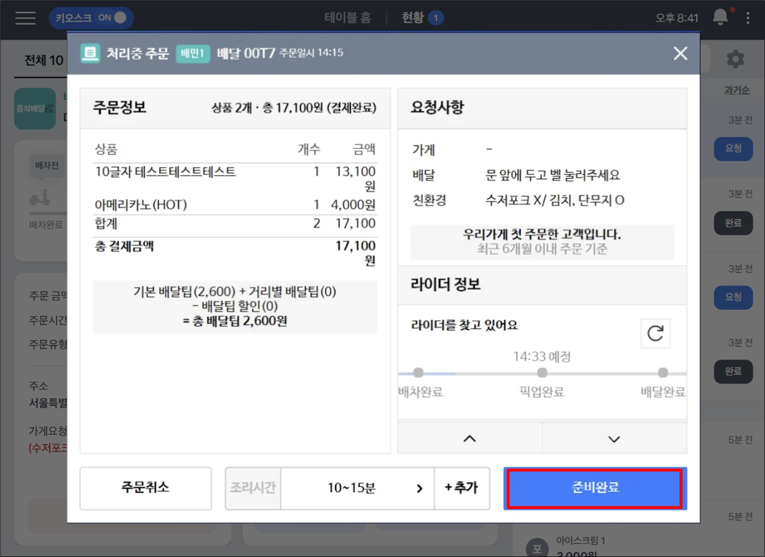1. 배민주문접수PC Lite 연동했다면 토스 POS에서 직접 주문 접수를 받을 수 있어요.