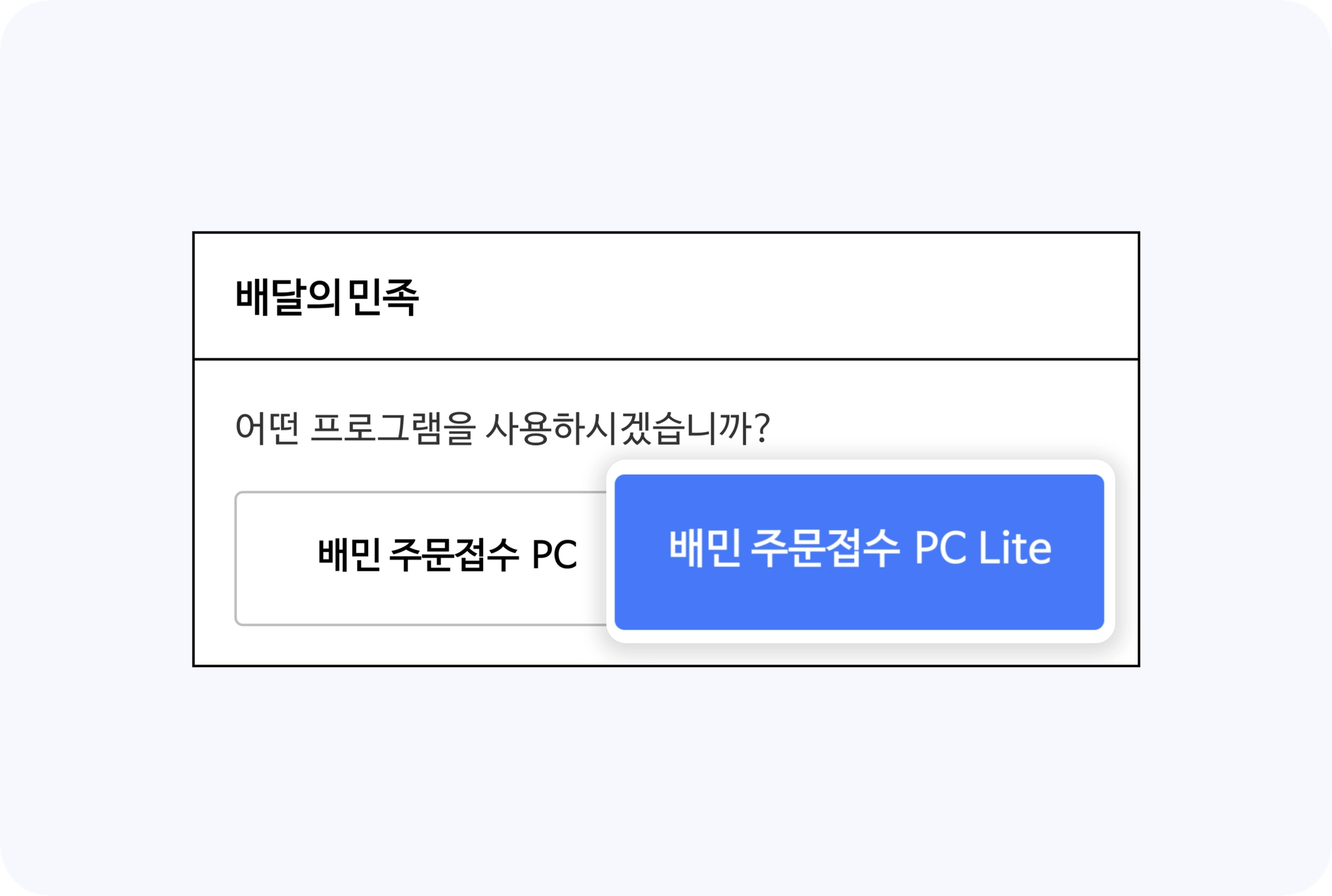 4. 설치 후 프로그램 선택 창이 뜬다면, 반드시 “배민주문접수 PC Lite”를 눌러주세요