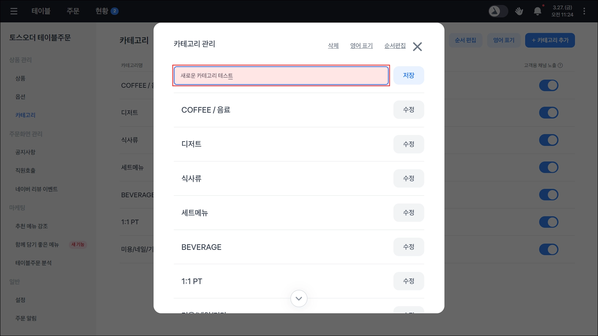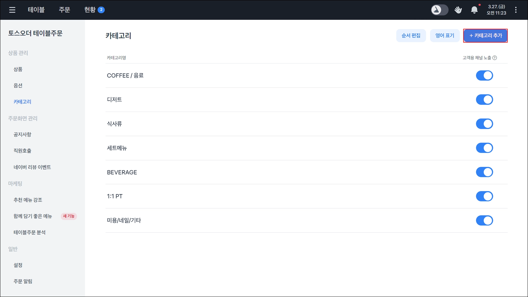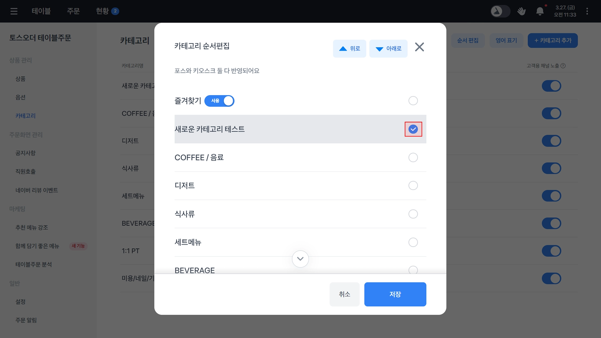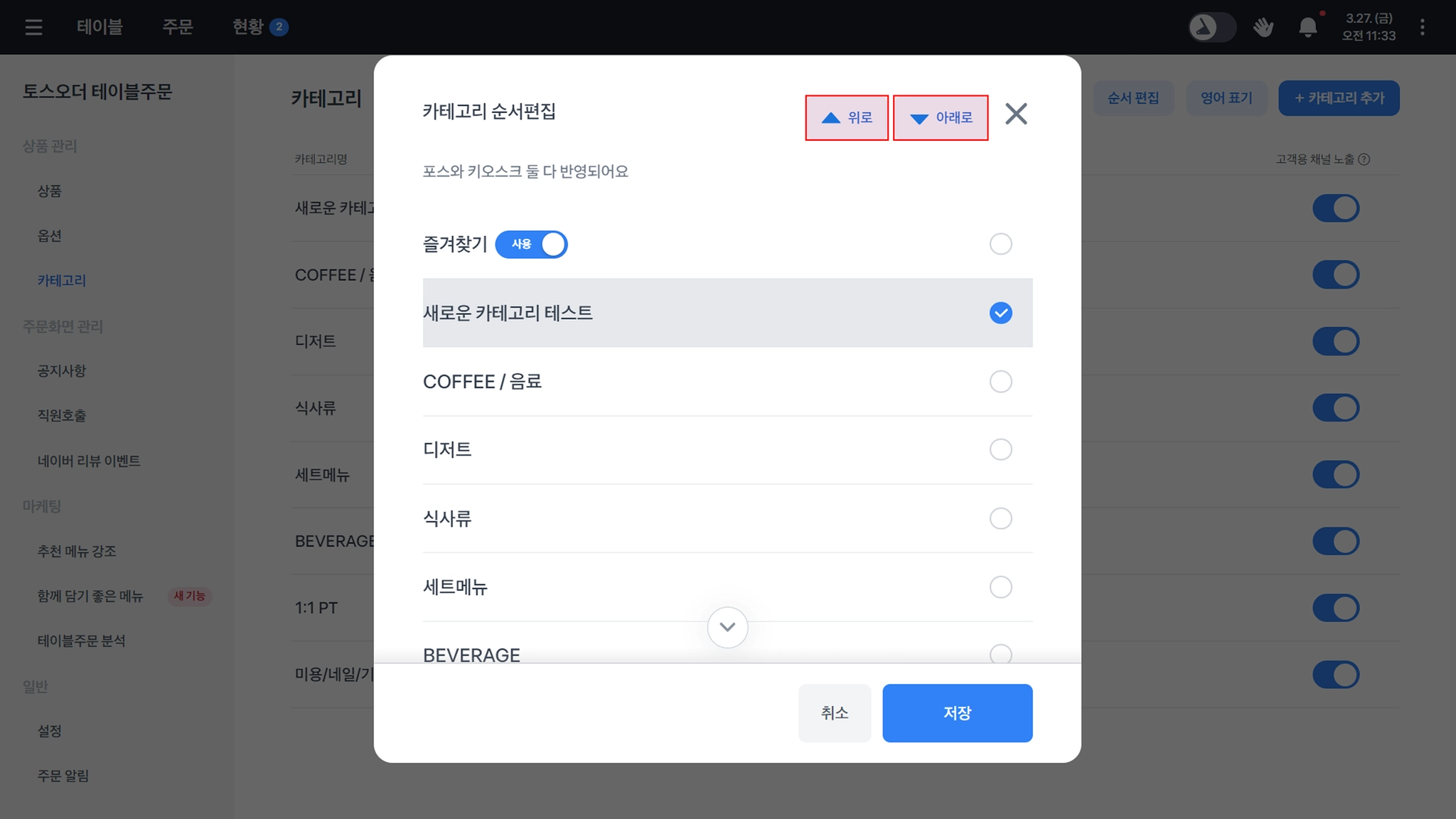 토스포스 카테고리 노출 순서 변경도 가능해요.