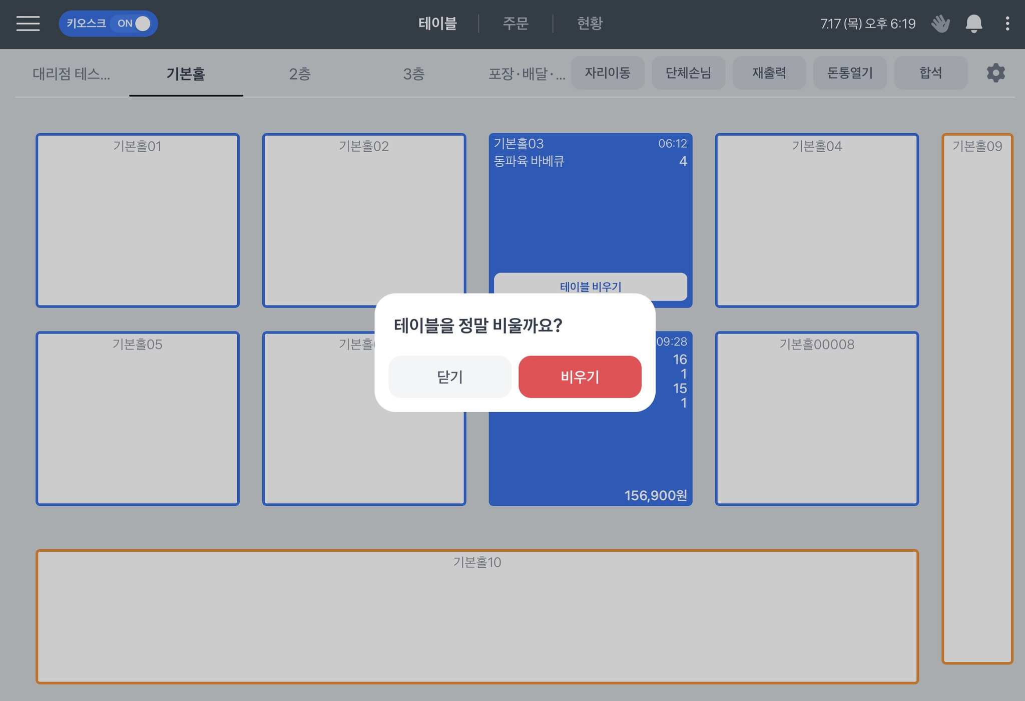 주문이 들어오면 테이블이 깜박거리고 클릭을 한번이라도 해야 깜박임이 없어져요.