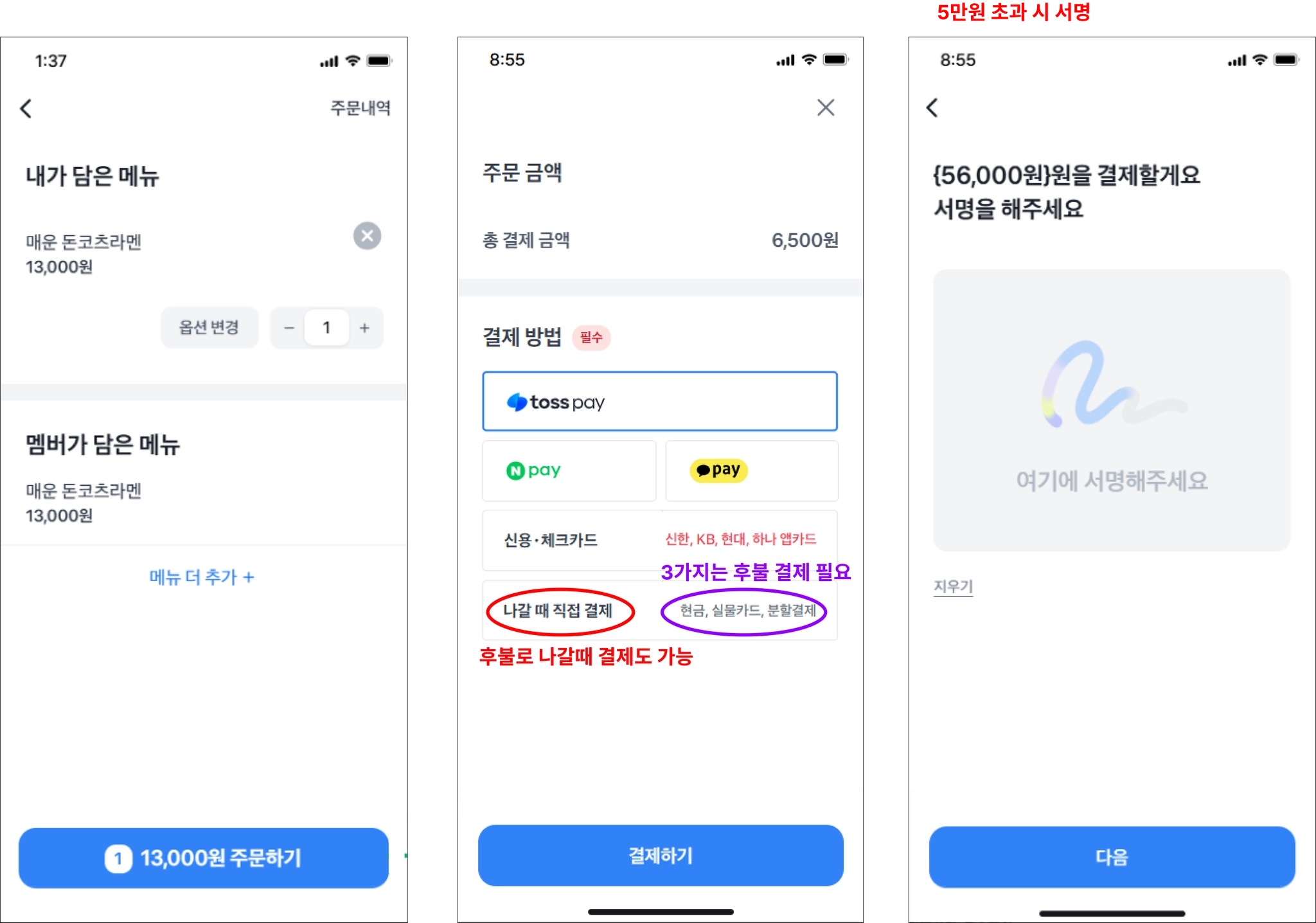 토스페이, 네이버페이, 앱카드로 결제 가능해요. (※ 카카오페이 및 카드사 도입 준비중)