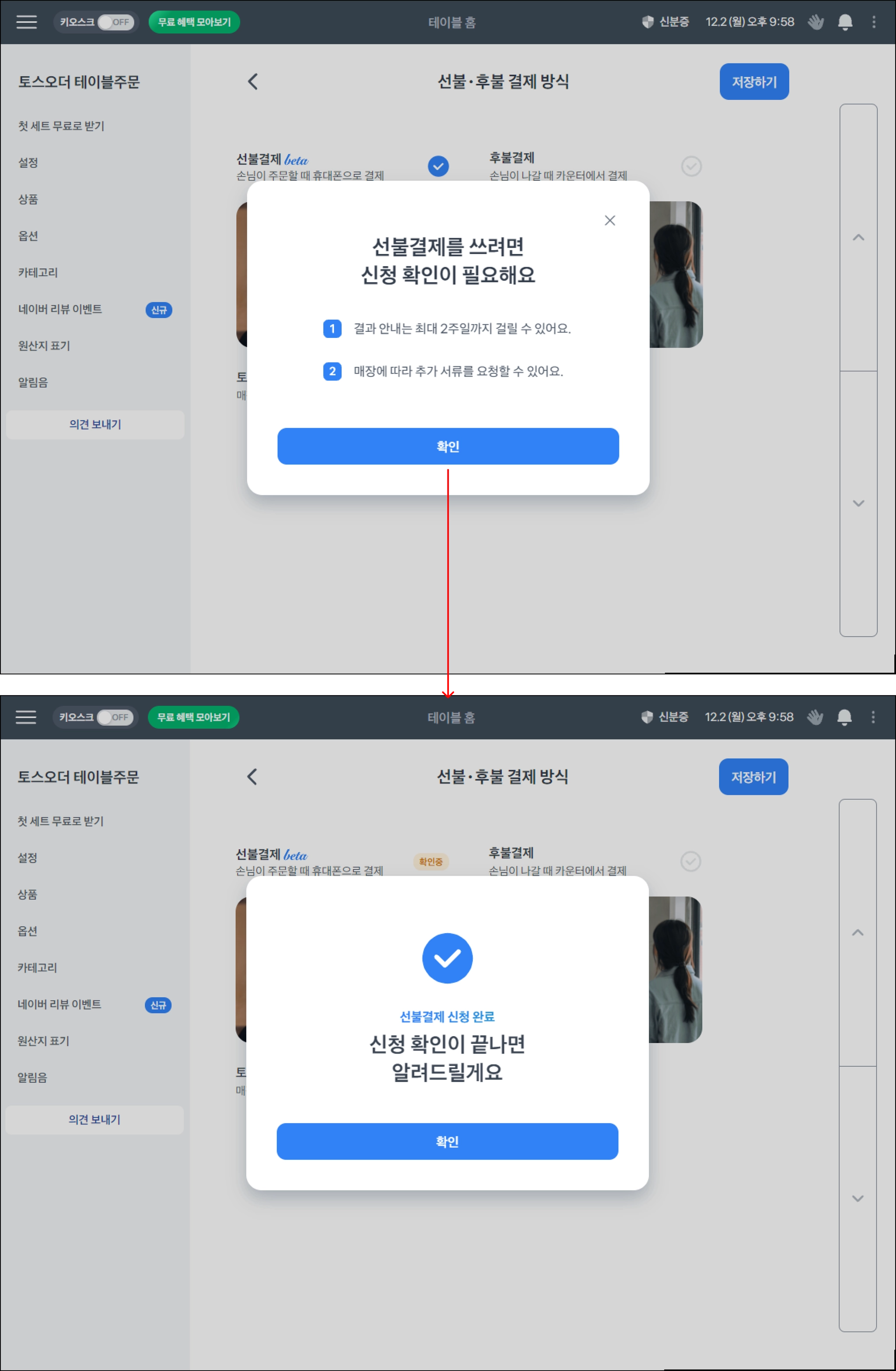 1. 테이블주문하면서 선불결제도 가능하도록 오픈되었어요!