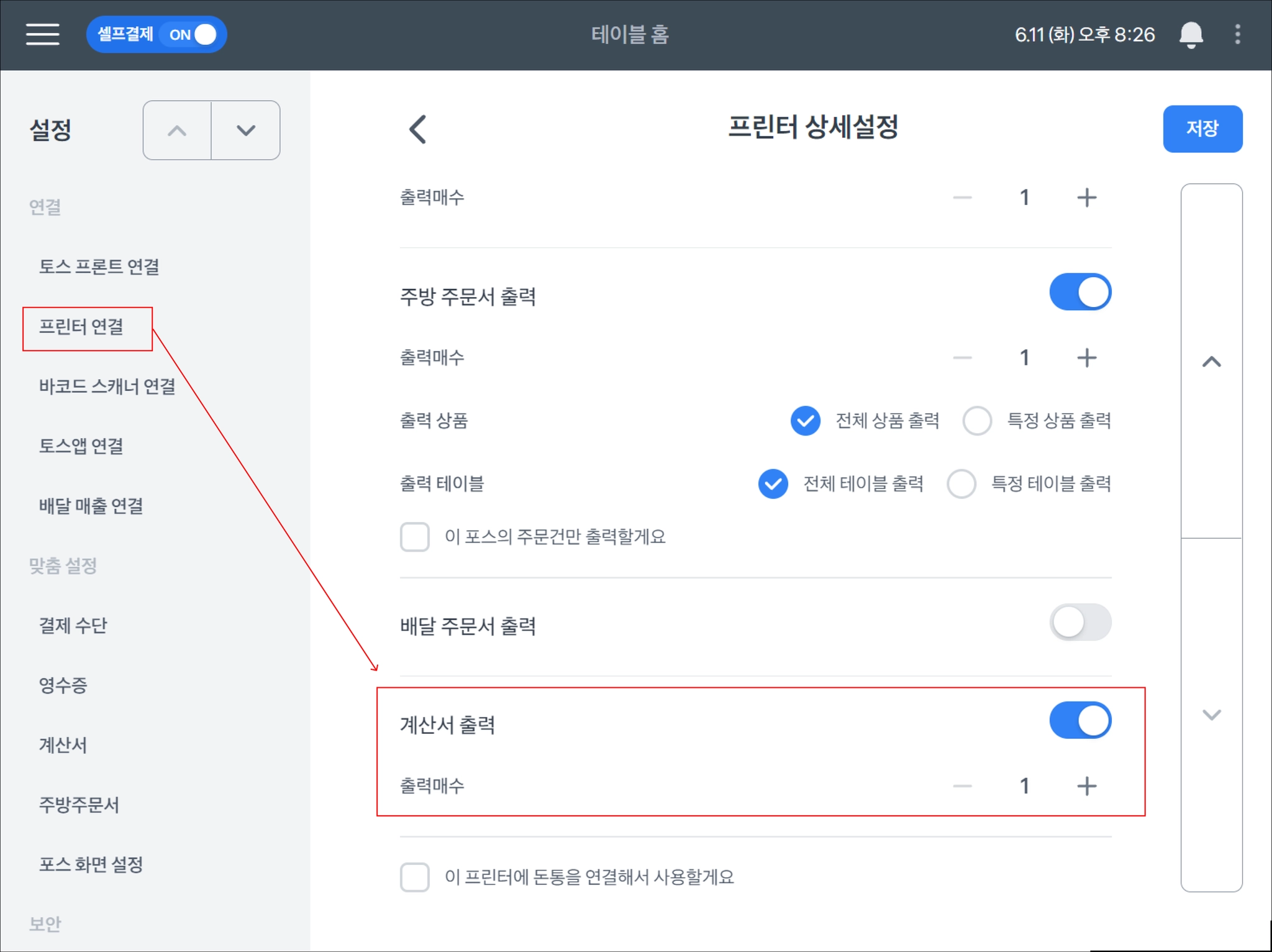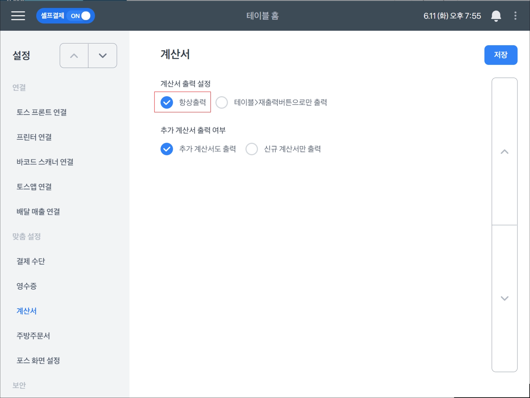 셀프 계산서 출력 설정법