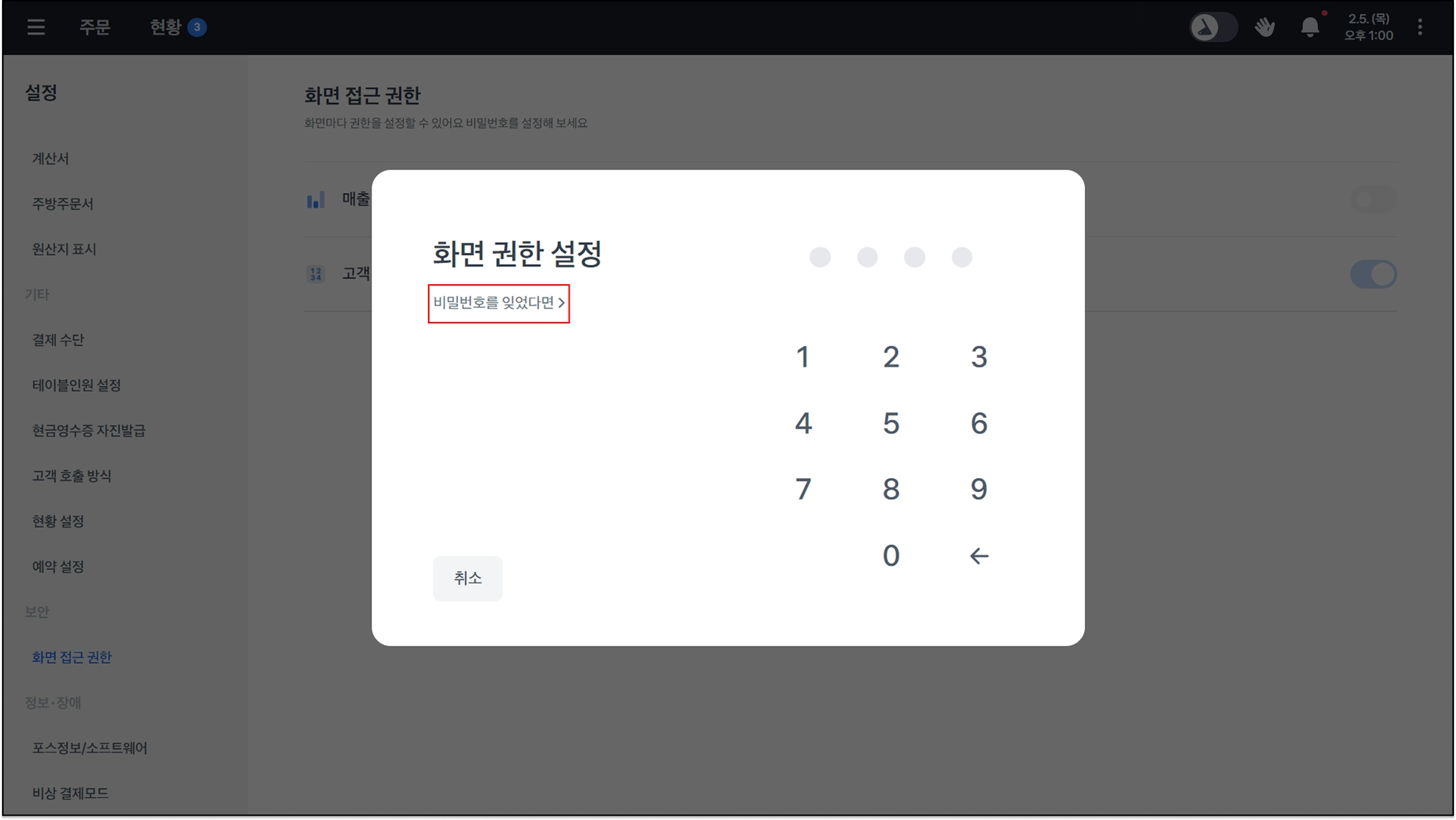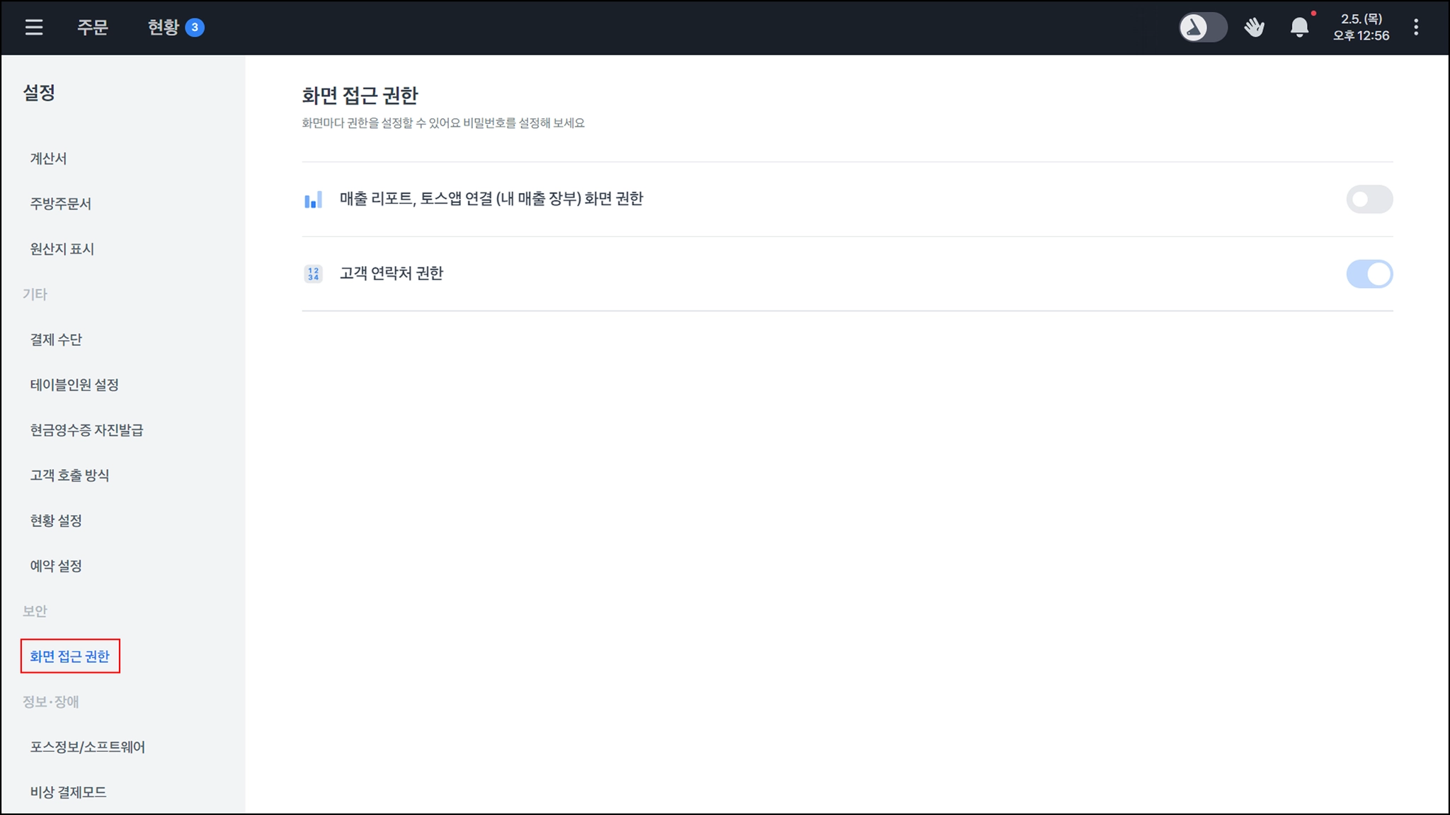 매출리포트, 토스앱 연결 (내 매출 장부) 화면 권한의 버튼을 눌러, 켜주세요.