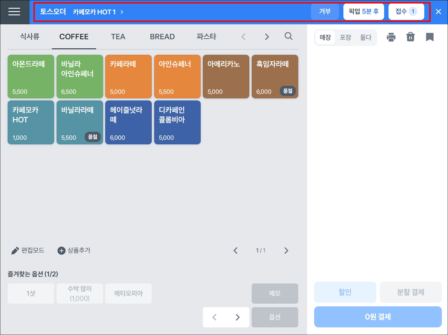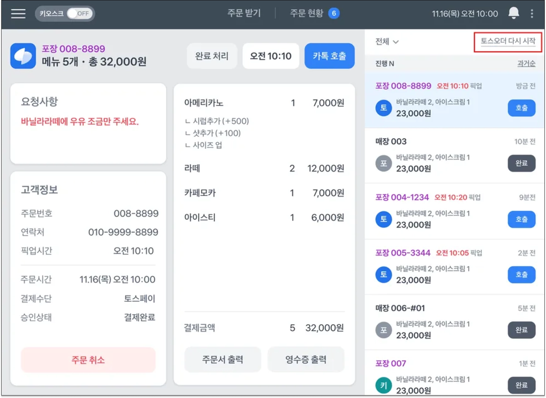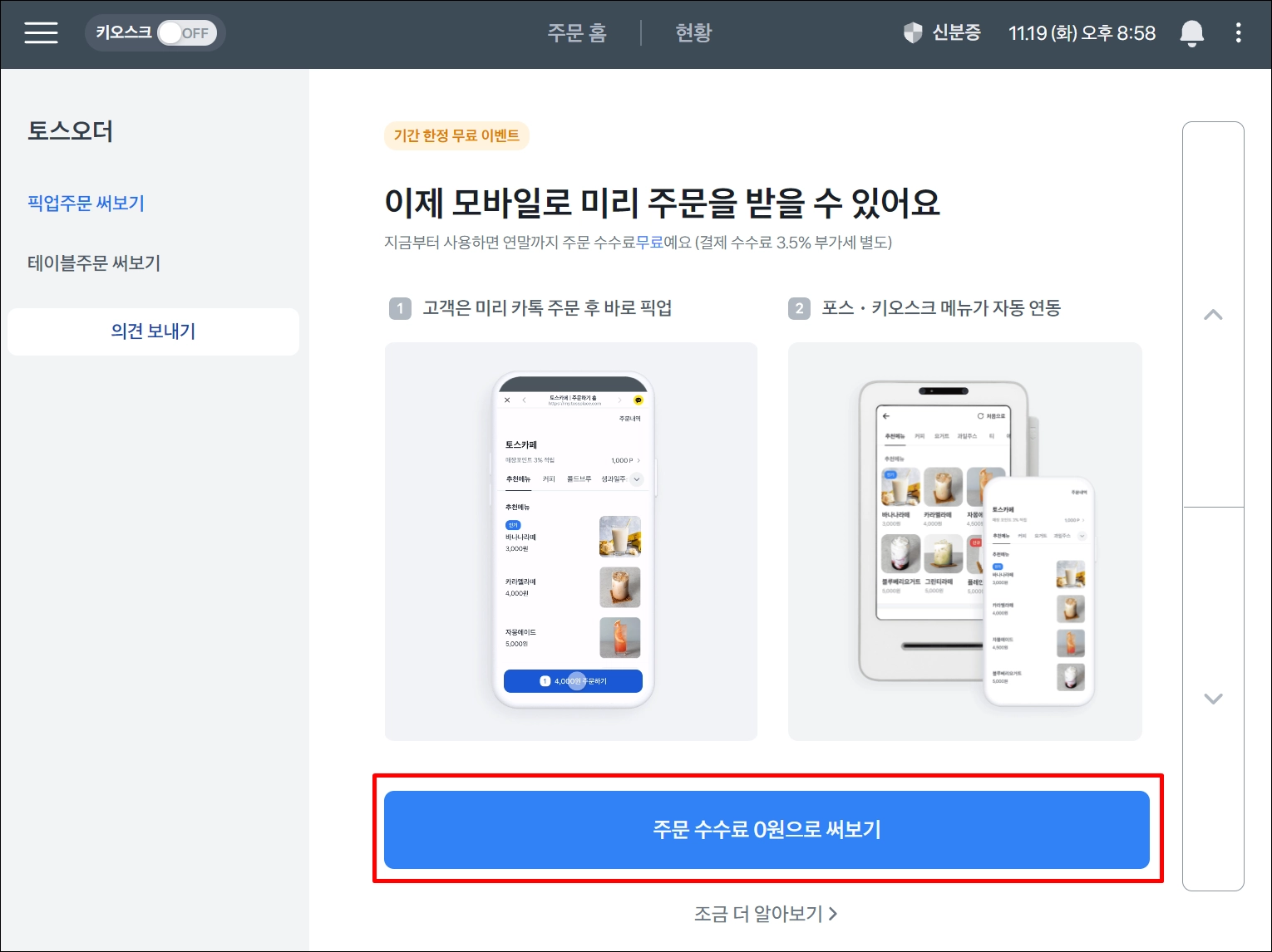 토스오더로 매장에 직접 주문해보기