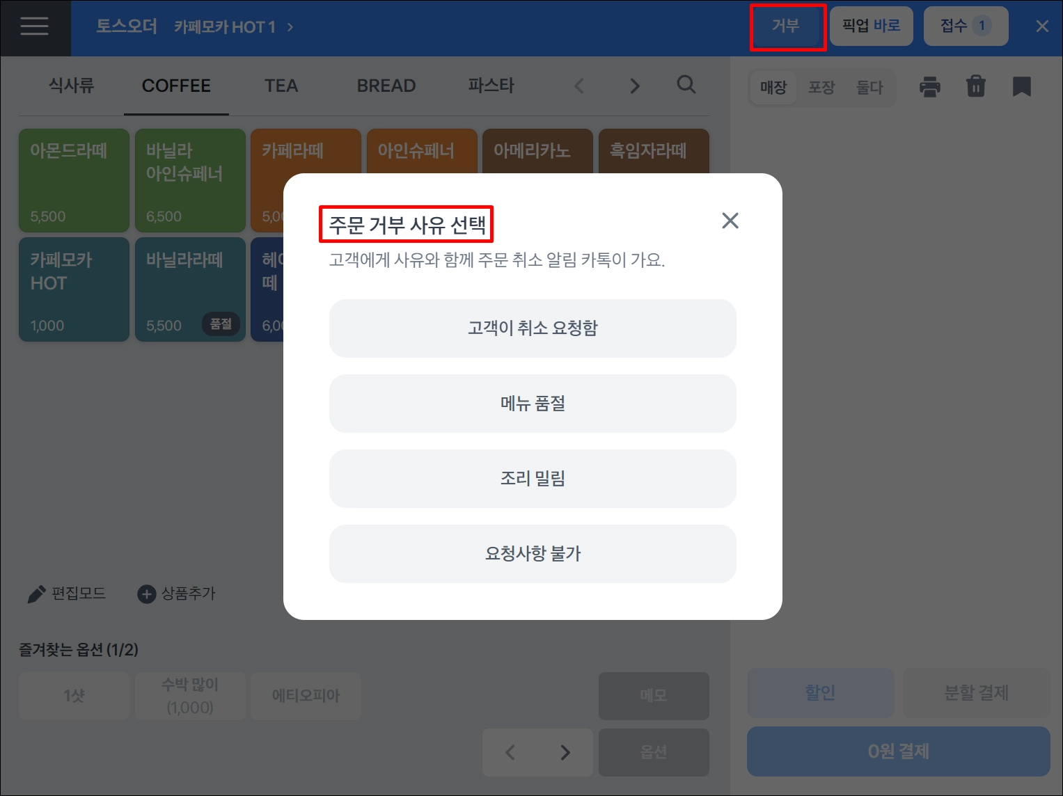 주문 접수·거부