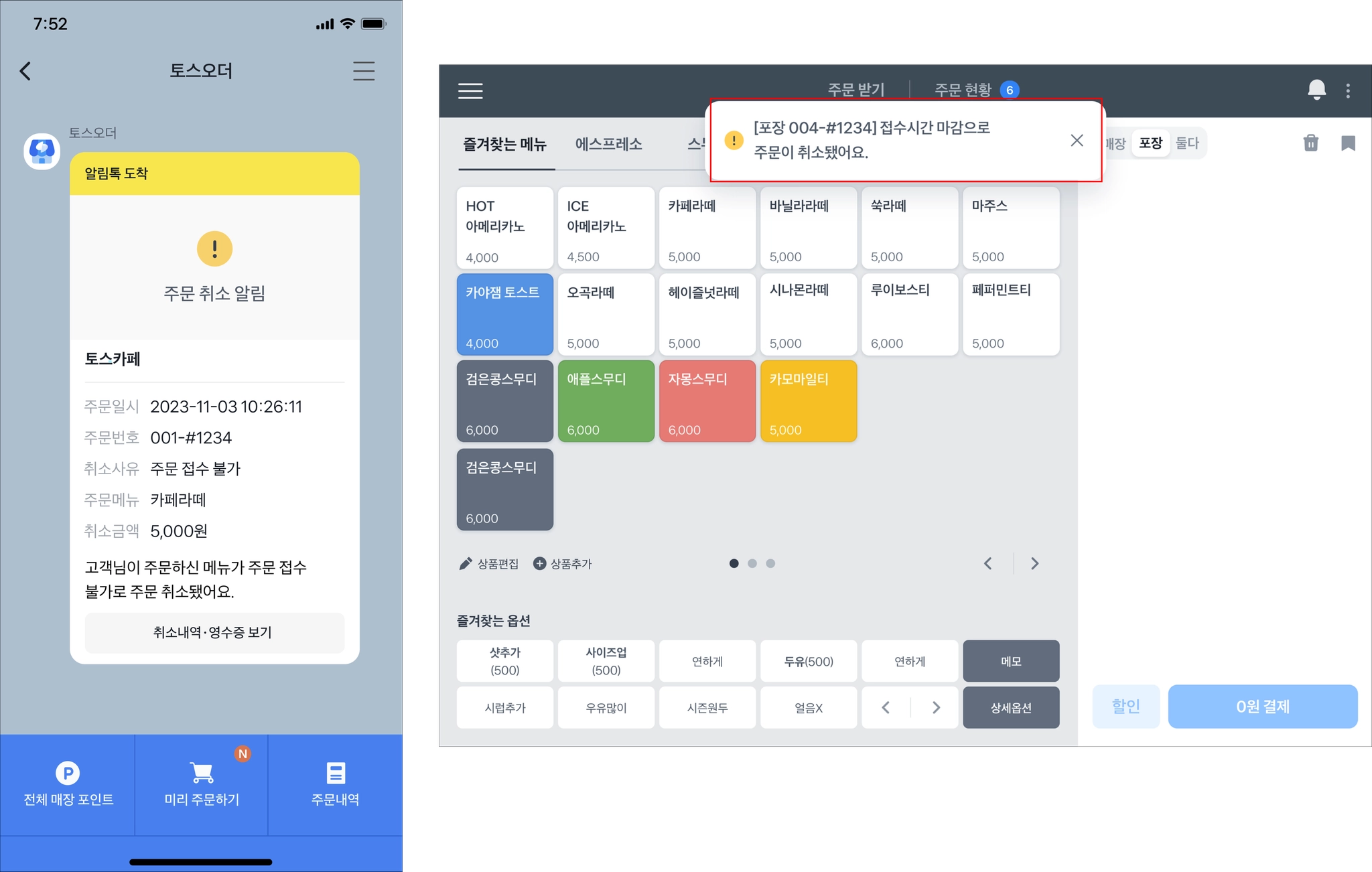 주문 접수 하기 전까지 고객이 모바일로 주문 취소를 할 수 있어요.