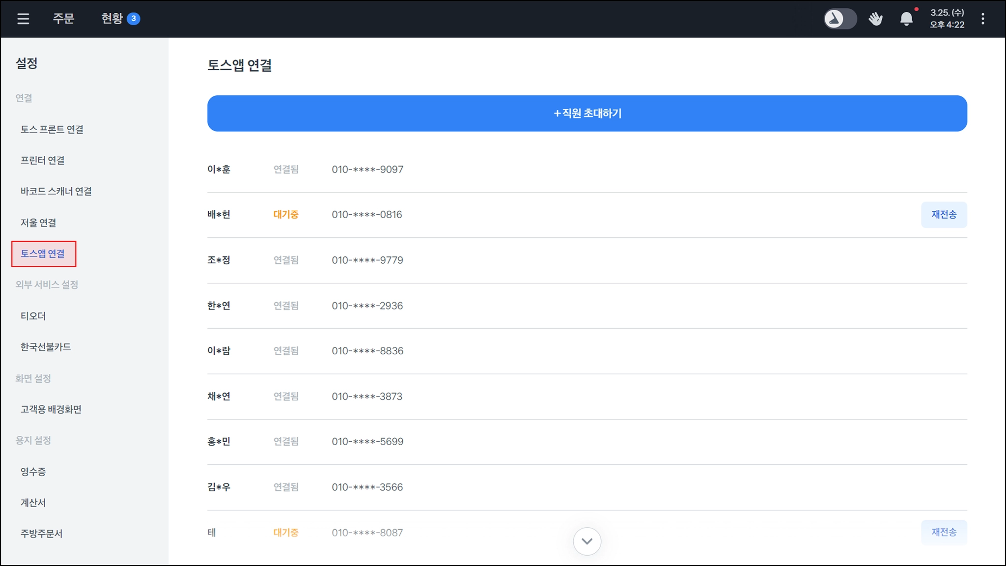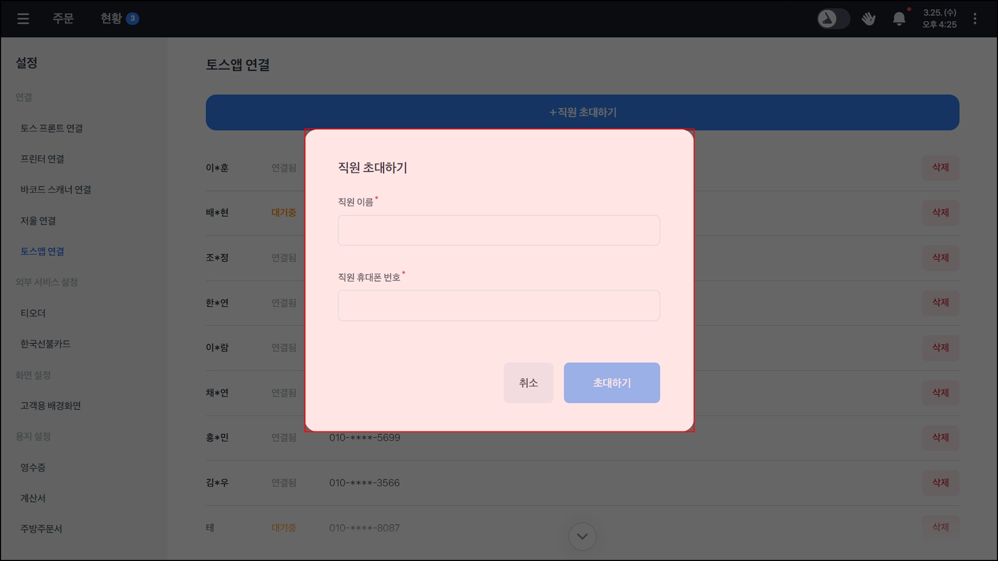 매출 장부 연동 할 직원 초대하기