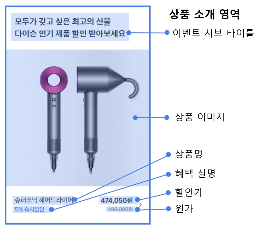 소재에 표기된 제품, 이벤트, 혜택 등 주요 내용이 랜딩 페이지에서 확인되지 않는 경우 광고 집행이 불가합니다.