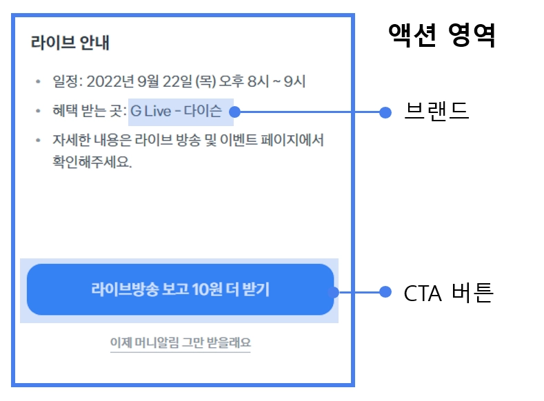 랜딩 페이지에서 확인 가능한 정보만 머니알림 소재에 기재 가능합니다.