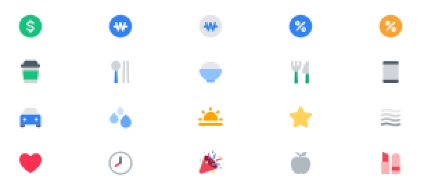 사용 가능한 혜택 리스트 아이콘은 다음과 같습니다.