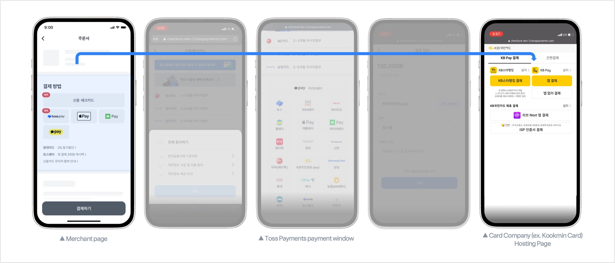 Scope of integration for merchants | No. Just need to call the payment window. | Payment method list, installment plan selection, promotion application, etc |