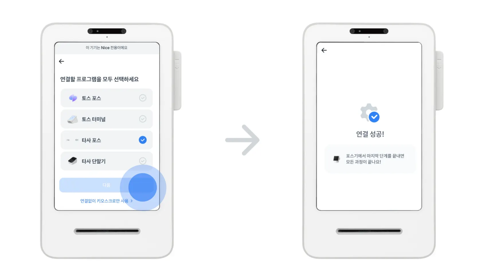 여기까지 완료되면, 프론트 메인화면(대기화면)이 켜져있는 상태에서 포스를 연동해주세요.