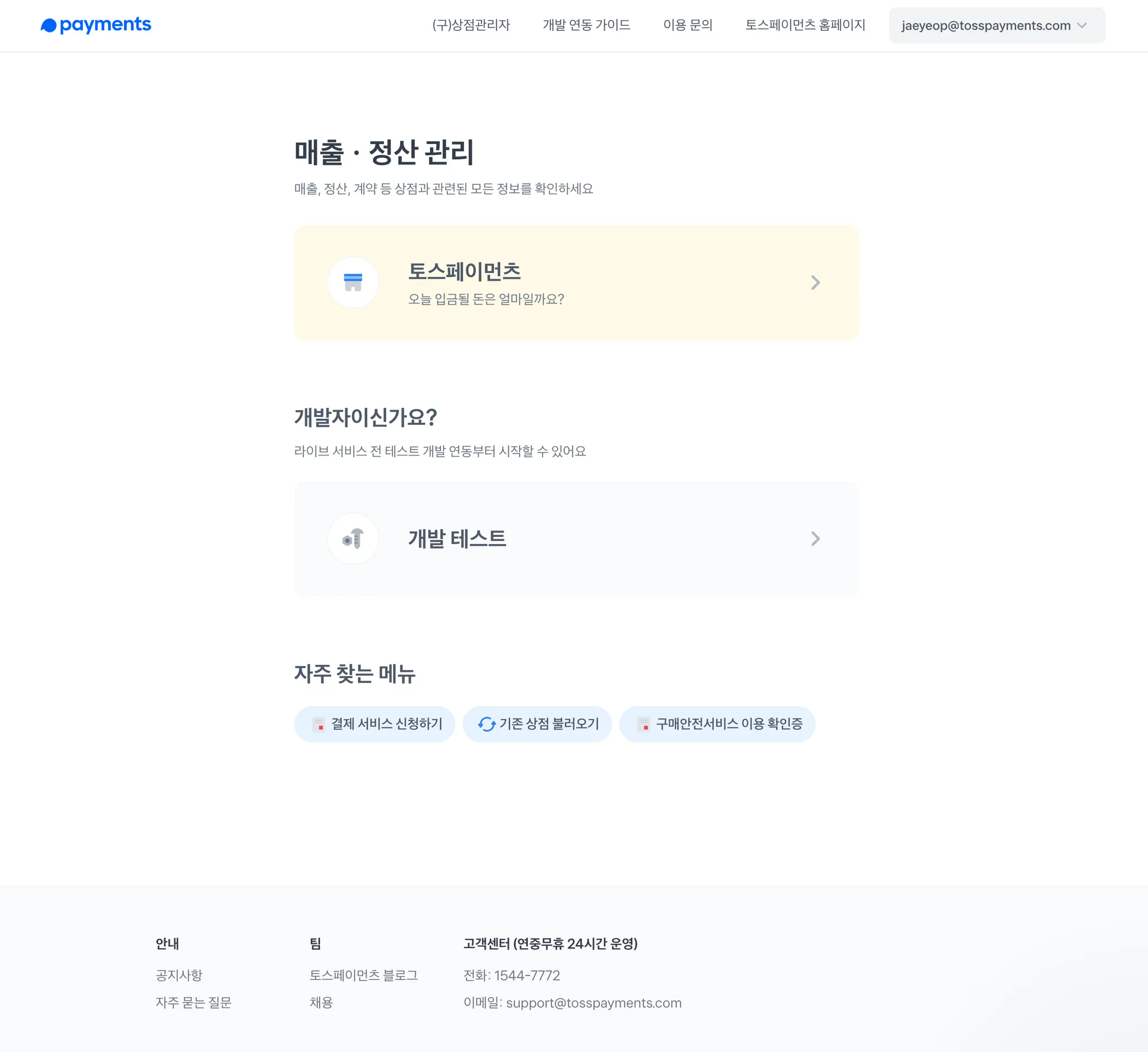 토스페이먼츠 PG를 이용하는 가맹점들이 청약(온보딩 과정)을 마무리하고 가장 많이 마주하게 되는 서비스