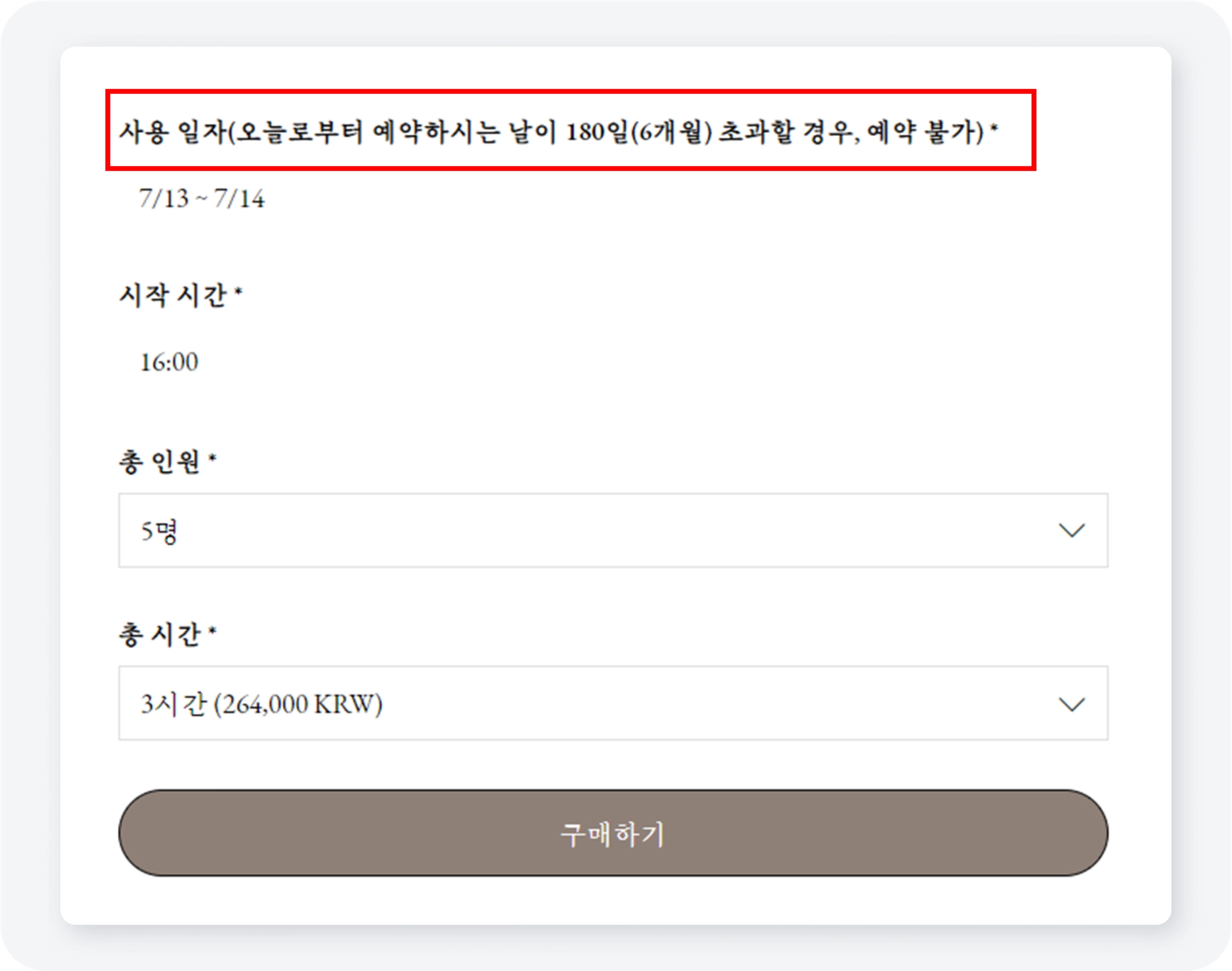 ( 예시 : 숙박의 경우, 오늘로부터 예약가능 날짜 180일 이내 )