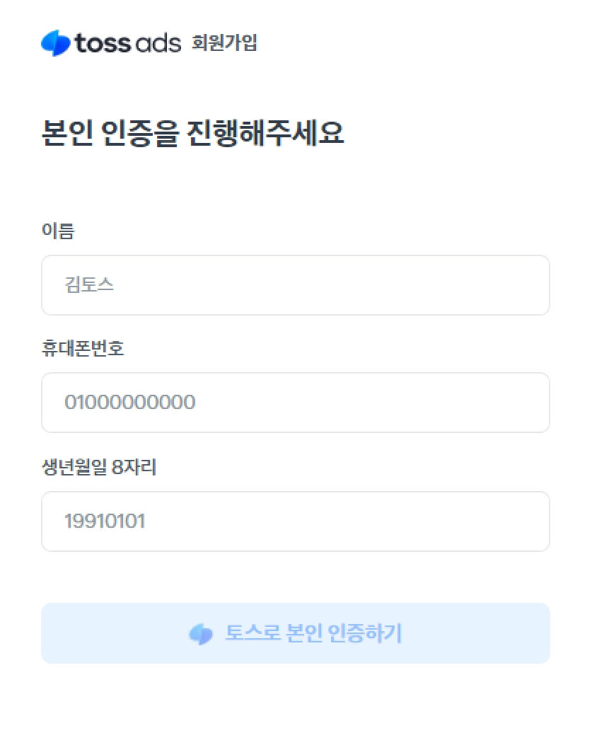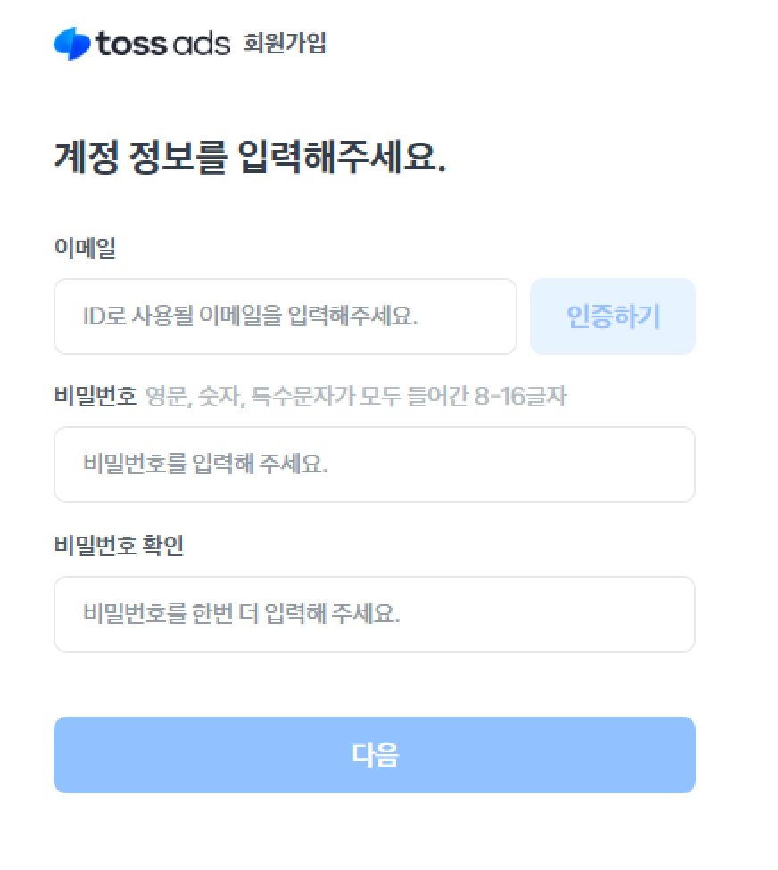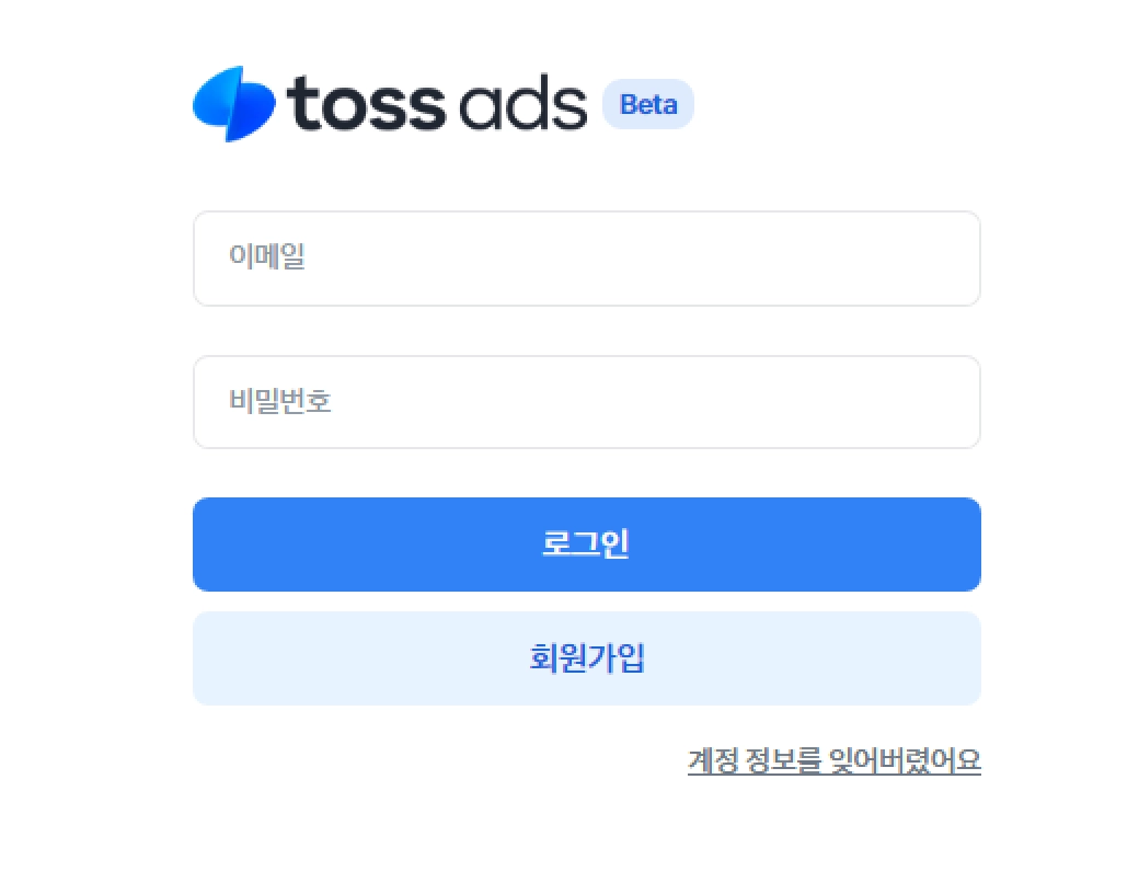1. toss ads에 접속해 회원가입 버튼을 클릭합니다.