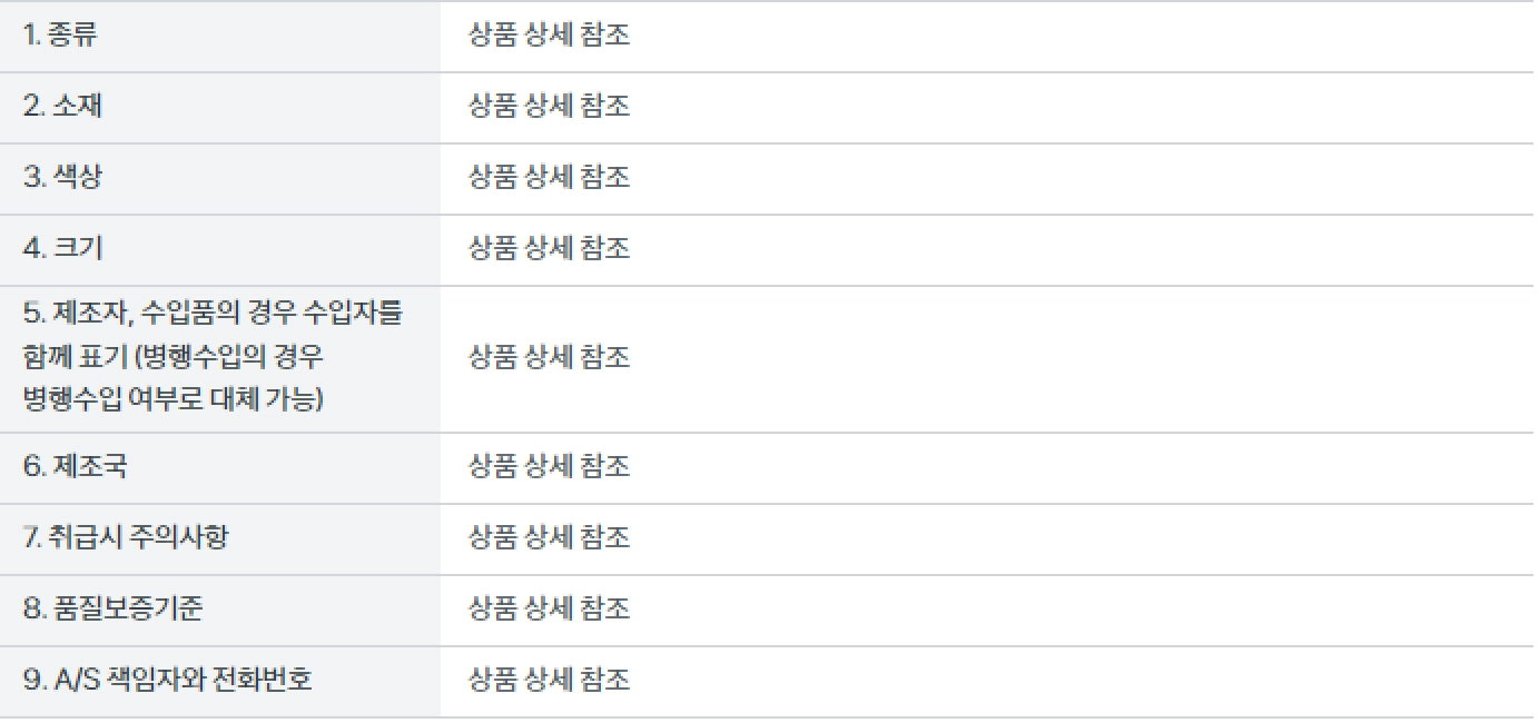 1. ‘상품 상세 참조’로 필수고시가 통일된 경우, 상세이미지에서도 필수고시가 확인되지 않으면 반려