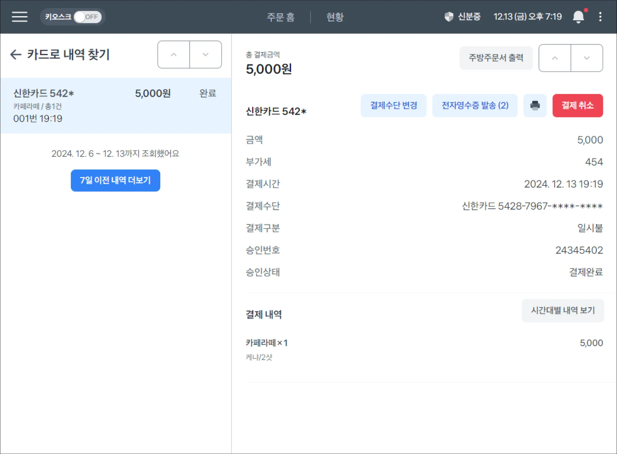 결제내역 상세조회는 매장 운영 중 고객의 과거 결제를 찾을 때 유용한 기능이이에요!
