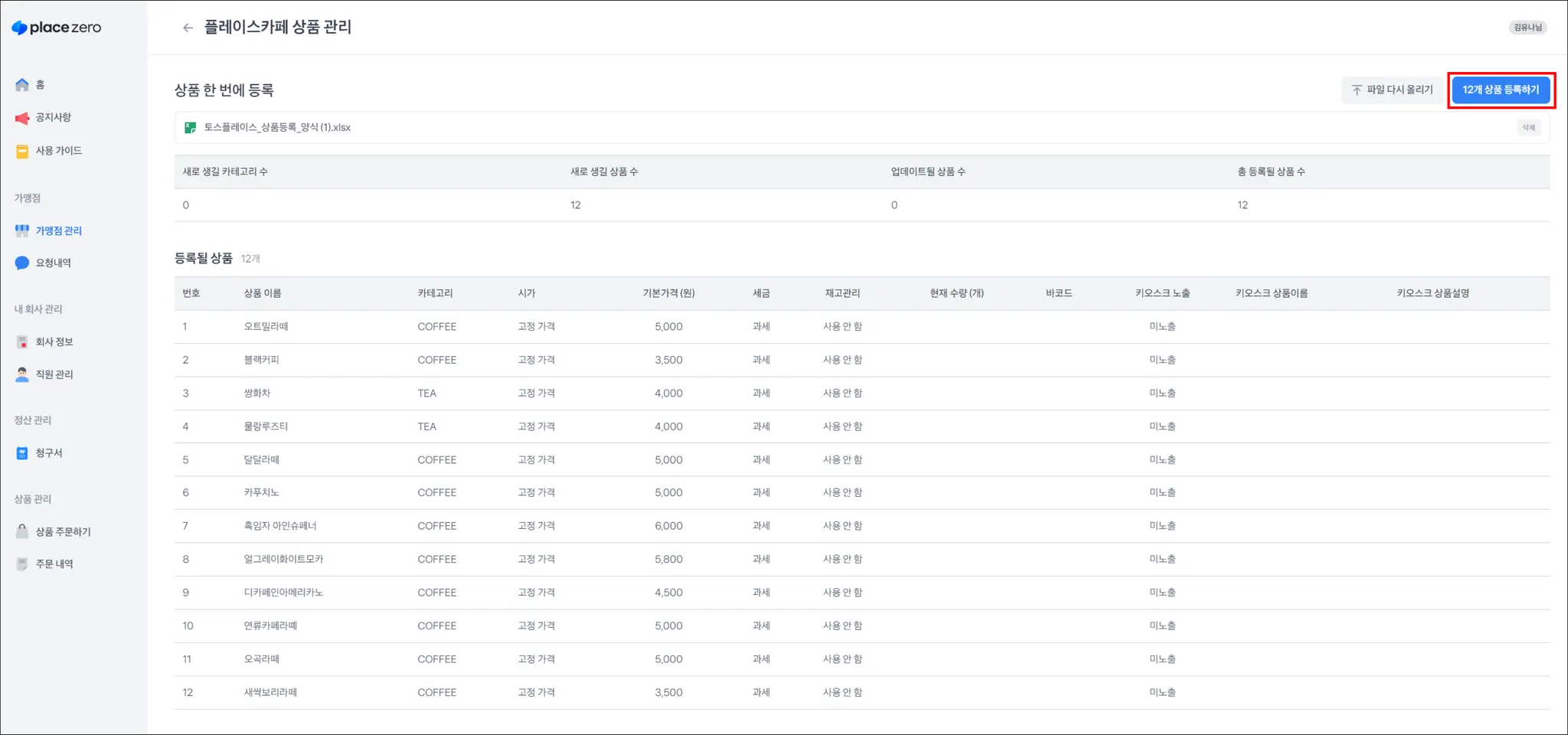 시트에 기재했던 상품들이 잘 업로드 되었는지 확인하고, 상품 등록하기를 눌러 완료해주세요.