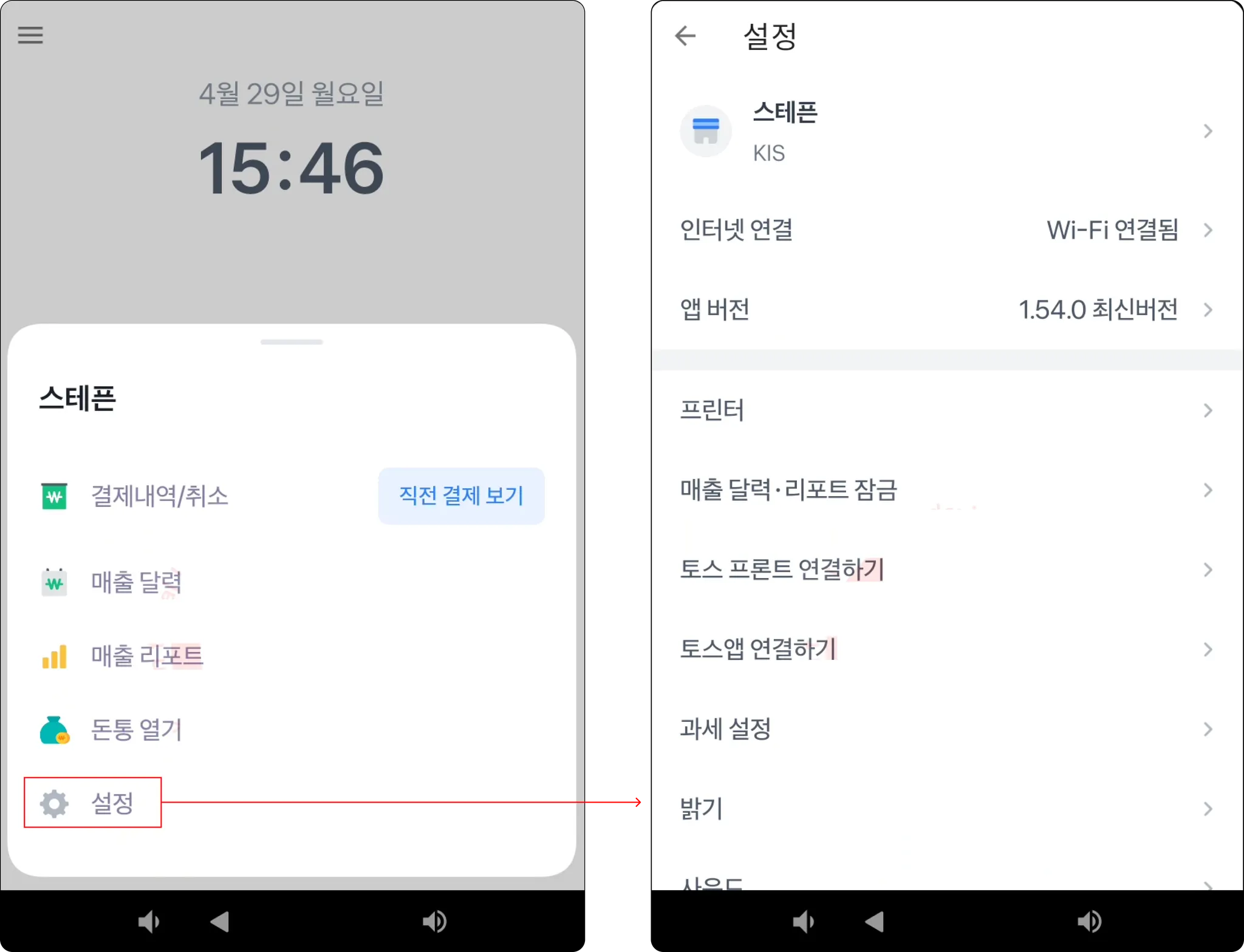 메뉴에서 설정 버튼을 클릭해주세요.