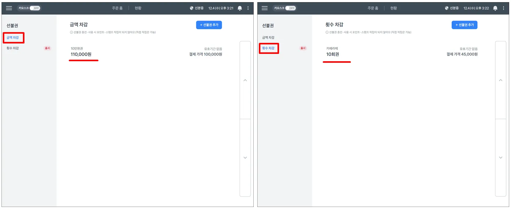 【STEP3】 현금/카드가 아닌 선불권으로 결제하기 (선불권 사용하기)
