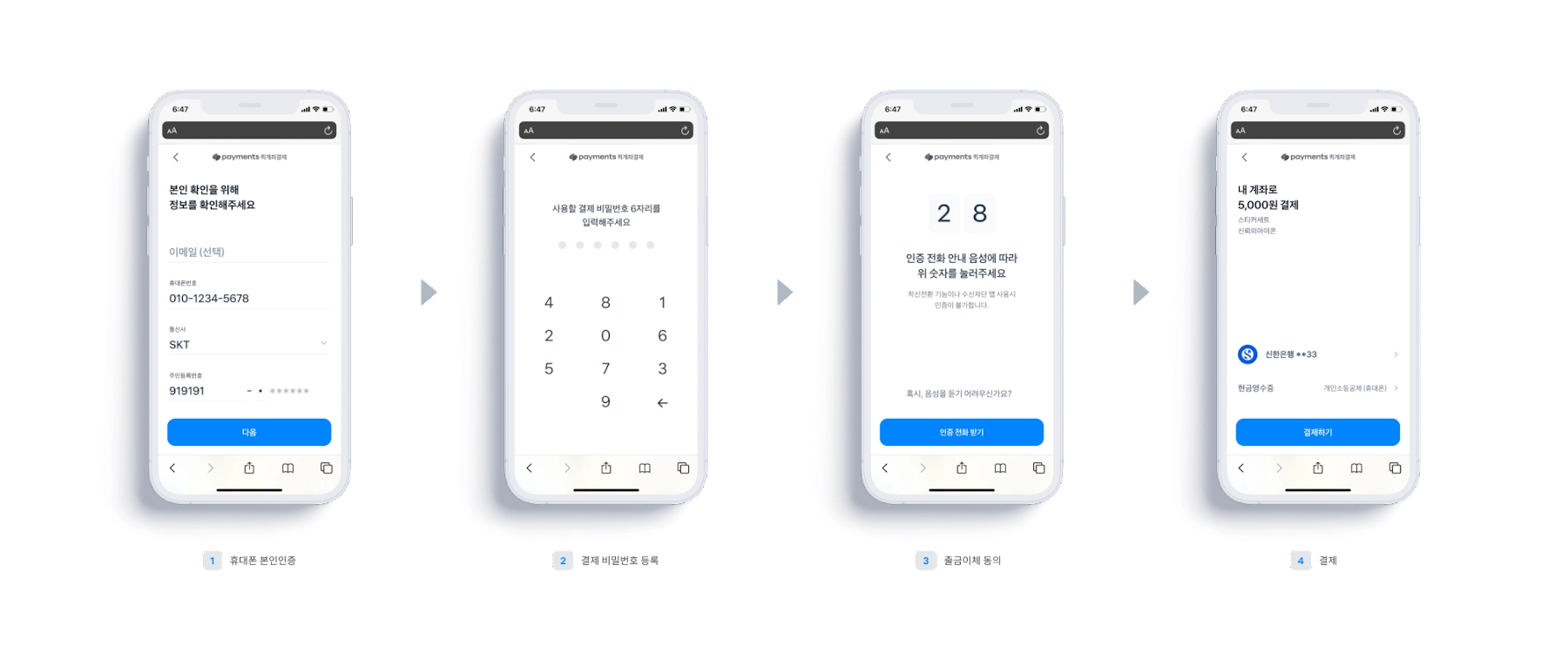 별도 앱 전환, 프로그램 설치 없이 웹사이트 결제화면에서 회원가입 / 인증 모두 통과 가능