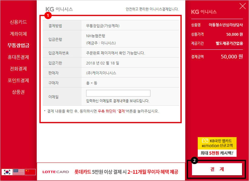 가상계좌(무통장입금)