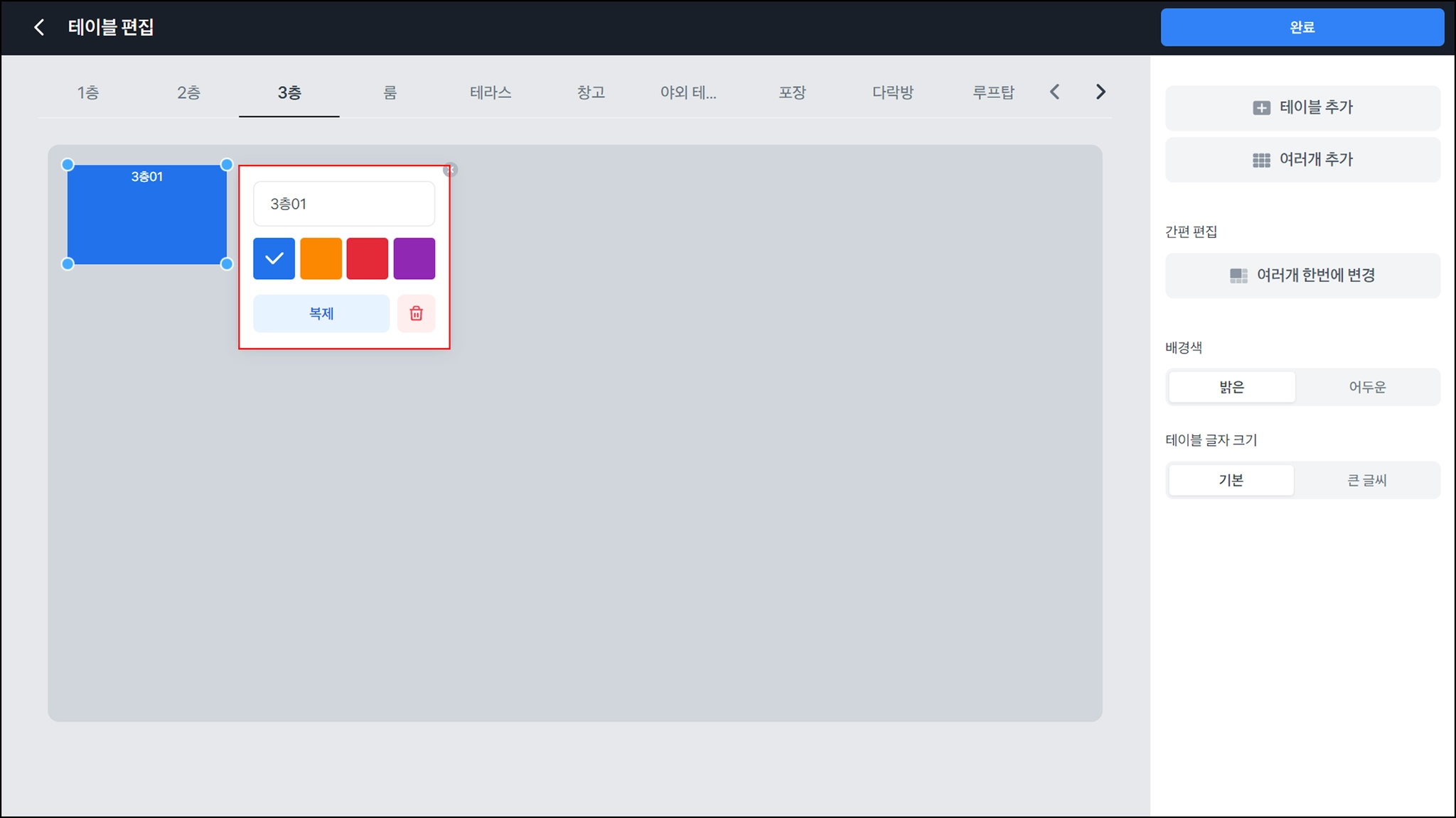 업종 유형을 후불형 매장으로 선택한 경우에만 공간과 테이블 편집이 가능해요.