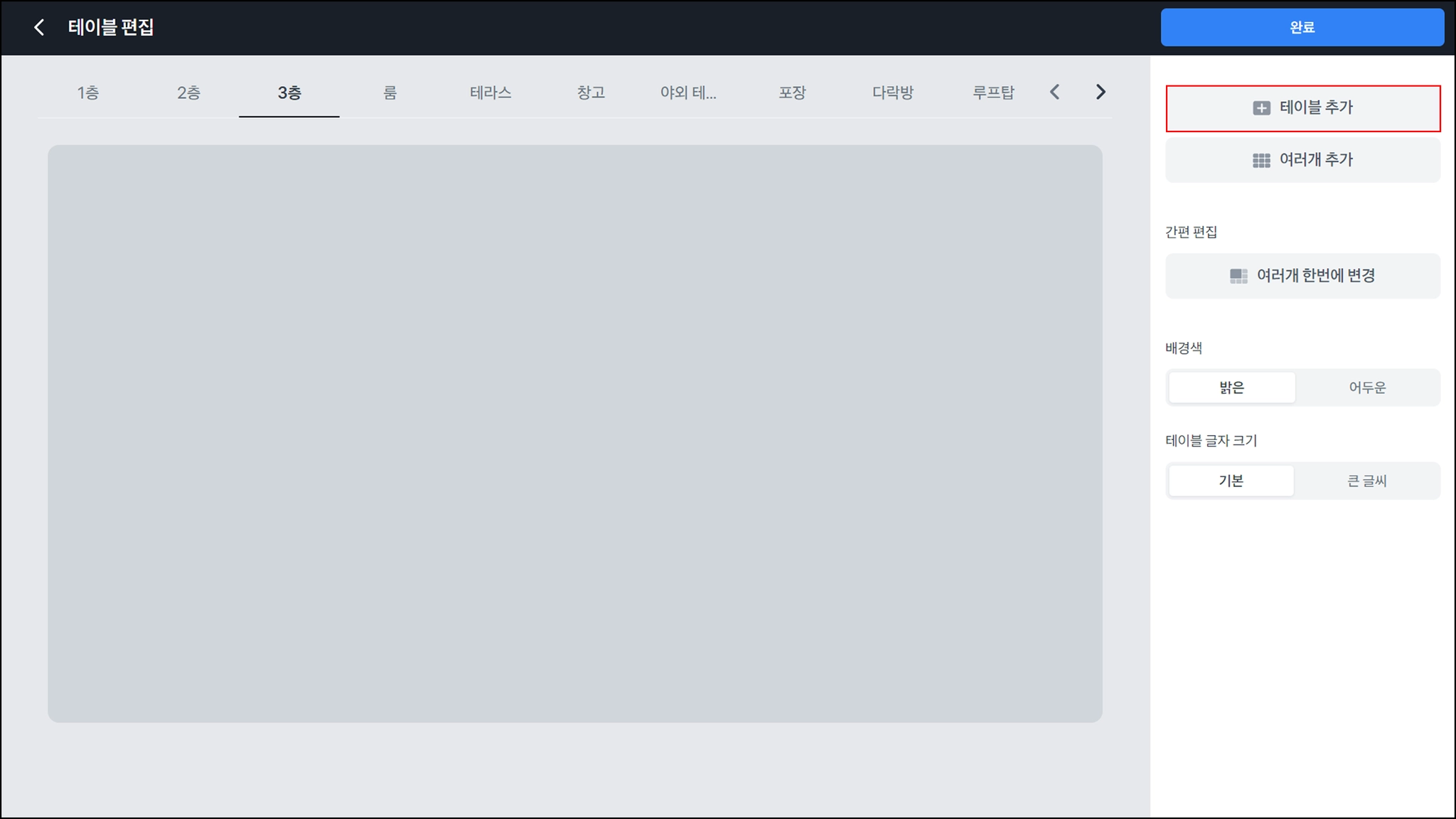 테이블 추가 버튼을 눌러, 실제 매장의 테이블 위치대로 테이블을 생성해주세요.