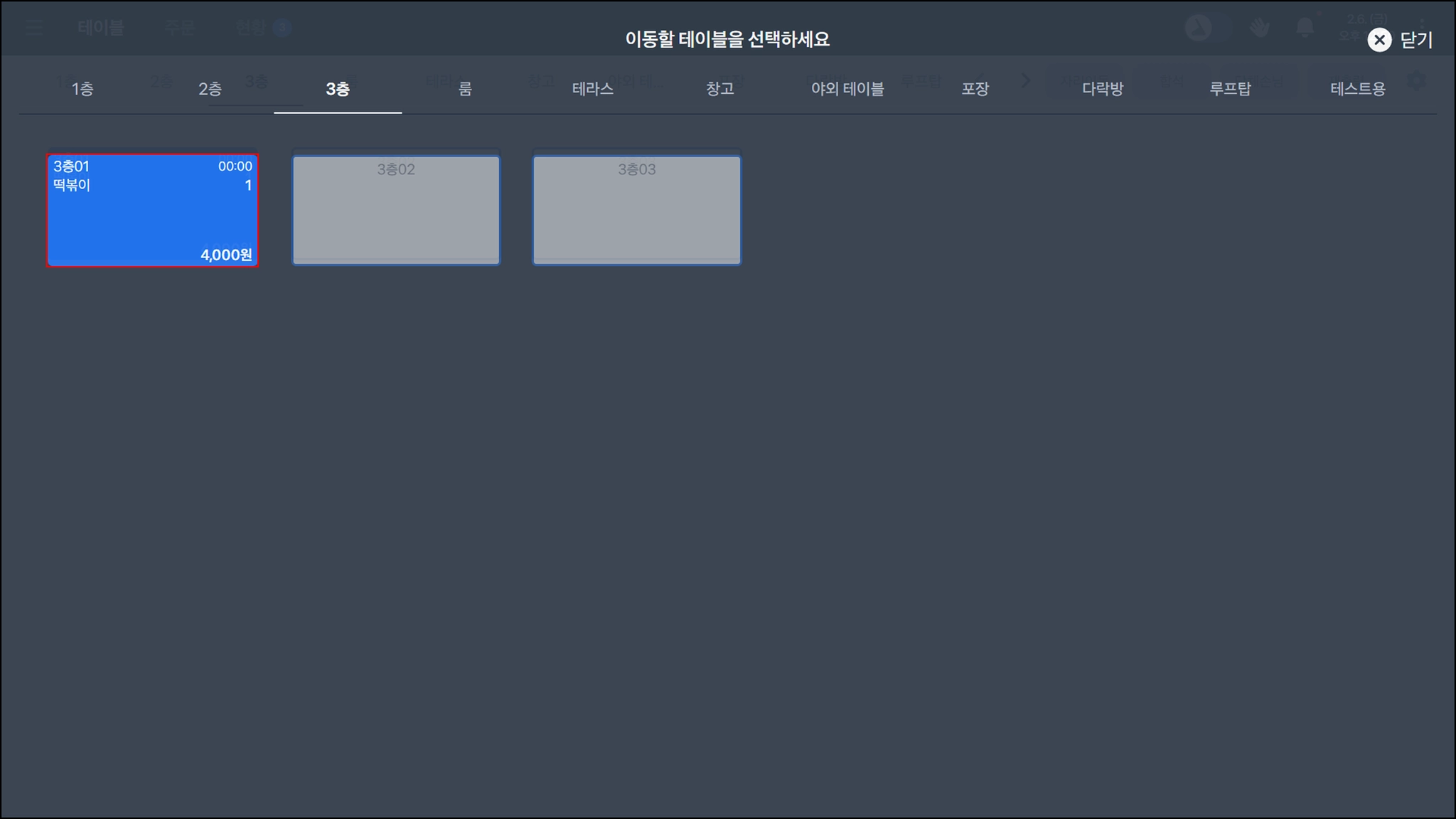 주문을 옮길 다른 테이블을 지정하면, 즉시 이동돼요.