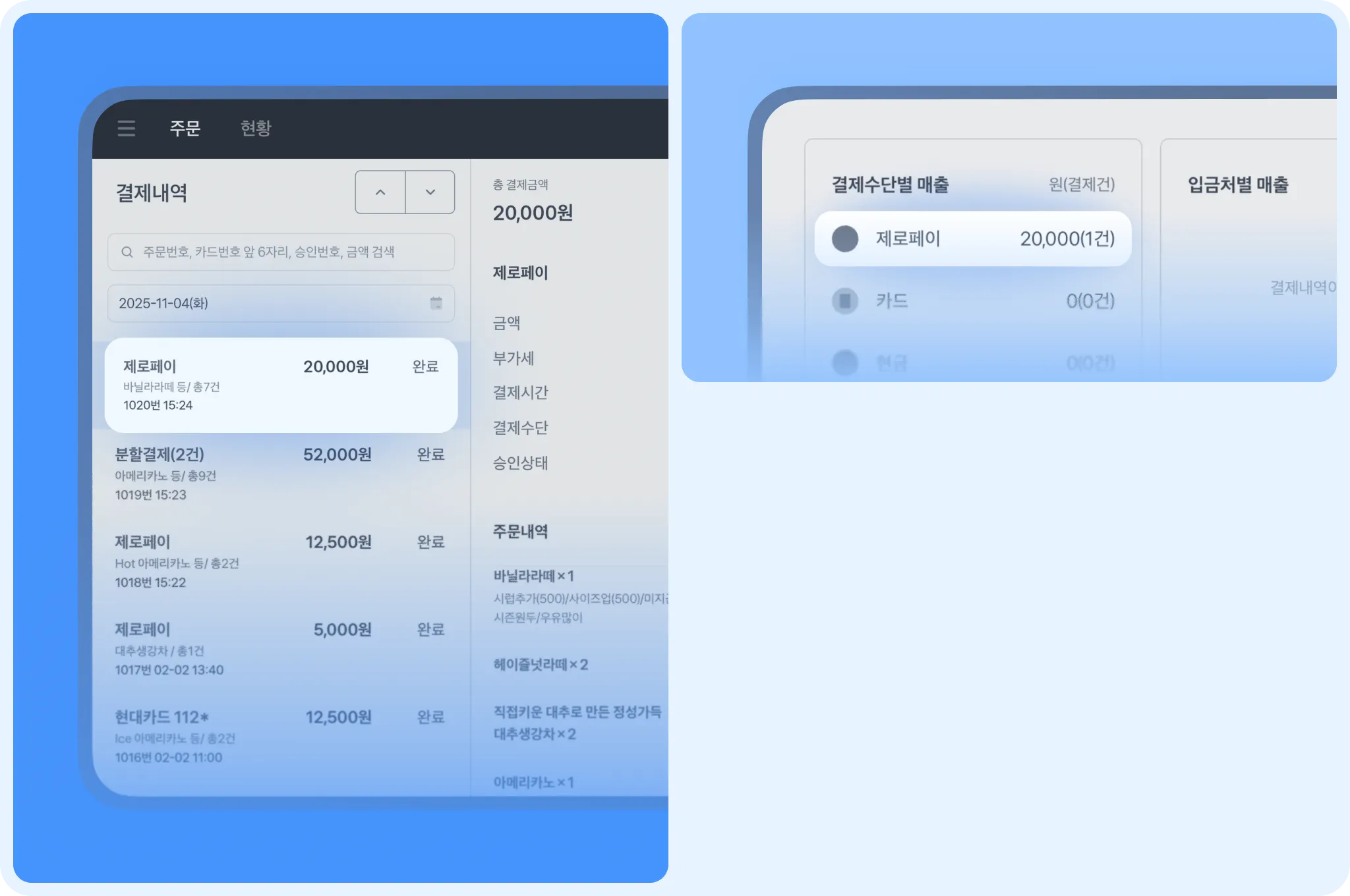 제로페이로 결제가 완료된 건은, 토스포스 내 결제수단과 매출리포트에도 제로페이로 기록되어요.